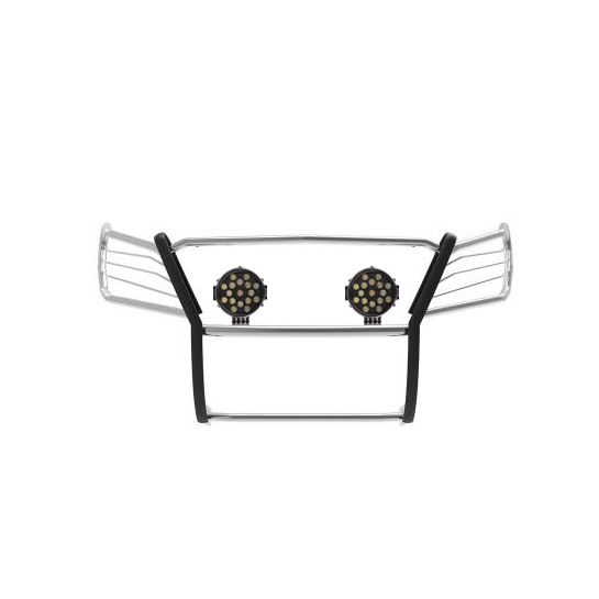 Black Horse Off Road Grille Guard Kit Stainless Steel Stainless Steel Modular Incl. pair of 7.0"Dia. LED Lights w/ Black Trim Rings w/ Wiring Harness and Switch It May Interfere with Vehicles equipped with Emergency Braking Systems, Adaptive Cruise Control and Parking Sensors