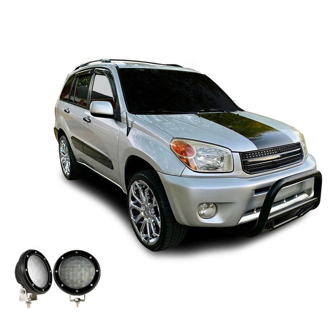 Black Horse Off Road Max Bull Bar Kit Black Steel No skid plate Pair of 5.3" Dia. LED Flood Lights w/ Black Trim Rings Wiring Harness and Switch