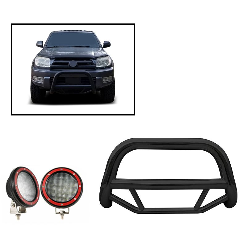 Black Horse Off Road Max Bull Bar Kit Black Steel No skid plate Pair of 5.3" Dia. LED Flood Lights w/ Red Trim Rings Wiring Harness and Switch It May Interfere with Vehicles equipped with Emergency Braking Systems, Adaptive Cruise Control and Parking Sensors