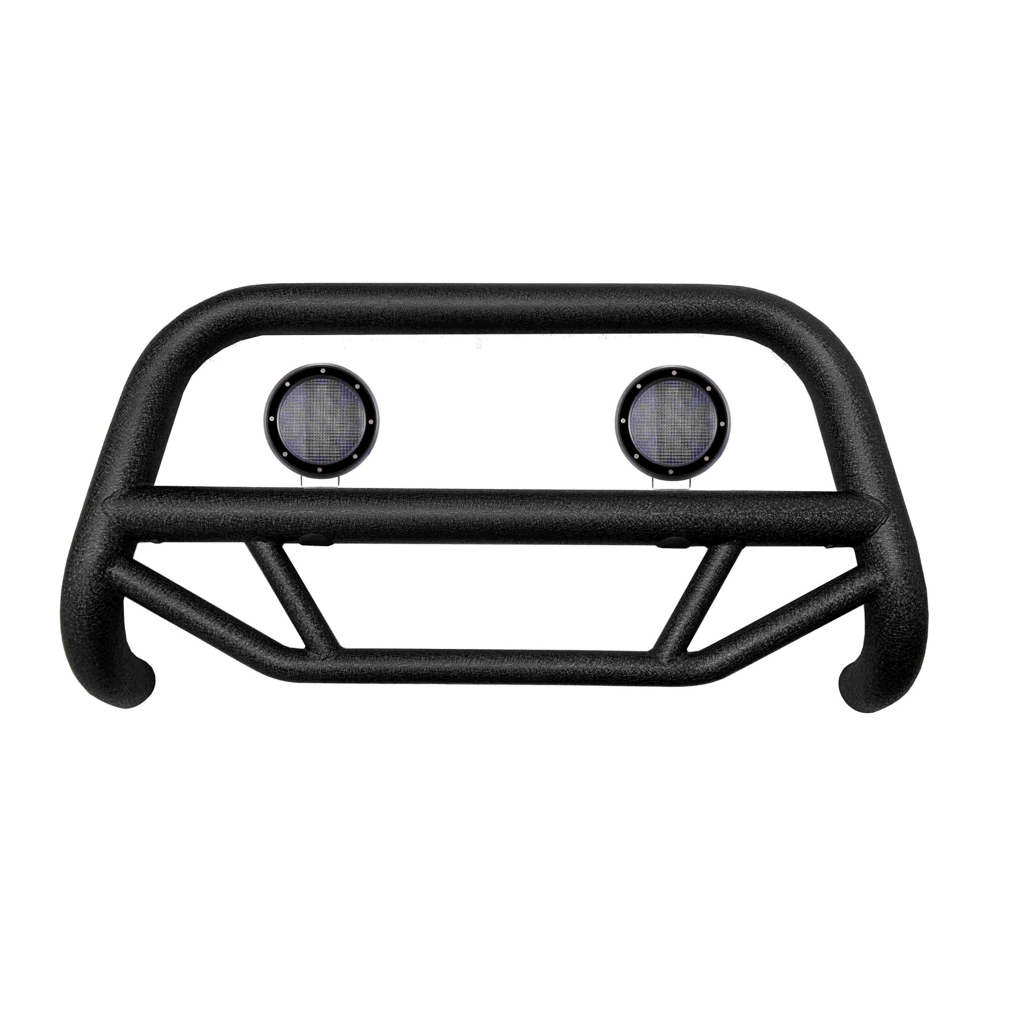 Black Horse Off Road Max T Bull Bar Kit Textured Black Steel Pair of 5.3" Dia. LED Flood Lights w/ Black Trim Rings Wiring Harness and Switch come with License plate Relocator 2.5" Dia Tube It May Interfere with Vehicles equipped with Emergency Braking Systems, Adaptive Cruise Control and Parking Sensors