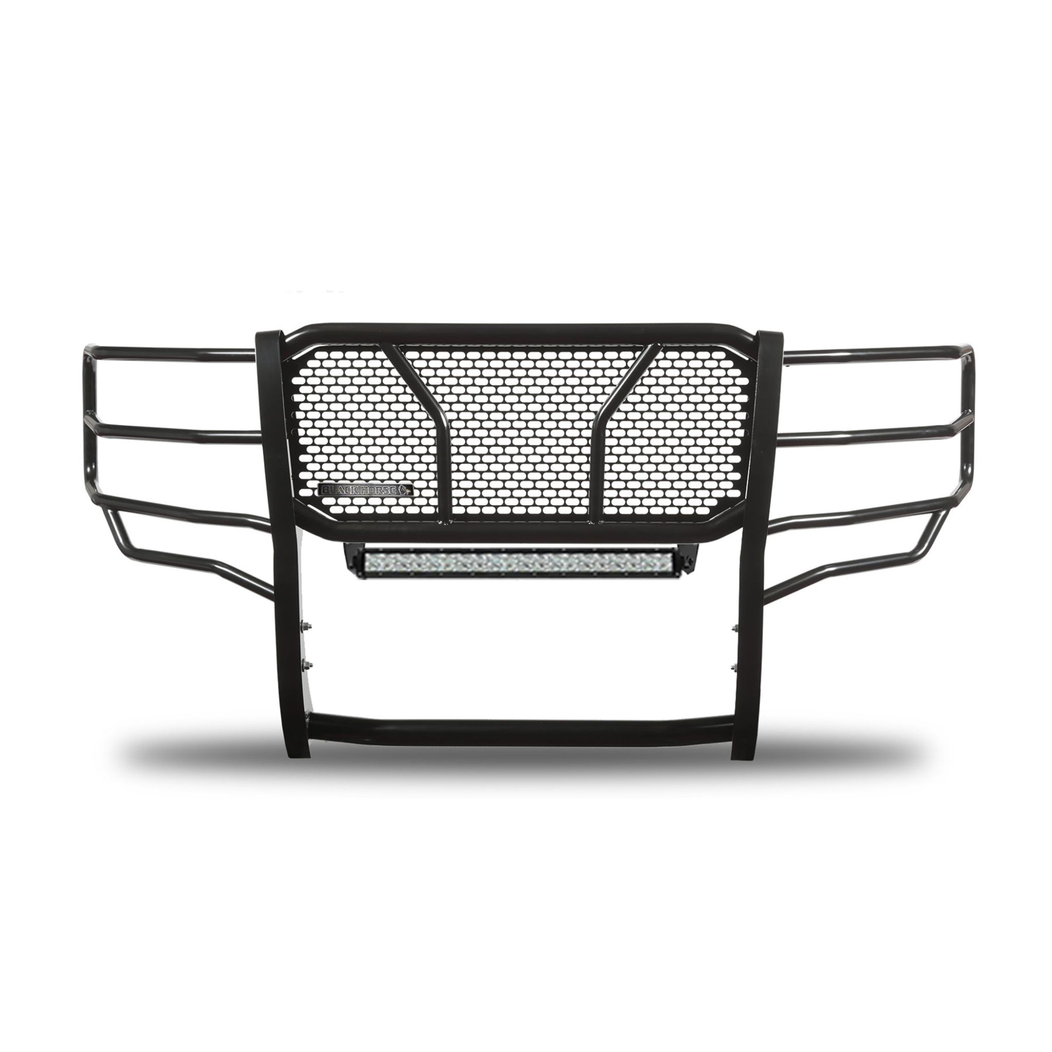 Black Horse Off Road Rugged Heavy Duty Grille Guard Kit Black Steel Modular Includes 1 20in Double Row LED Light Bar Excludes models with Active Grille Shutters 2014 and up It May Interfere with Vehicles equipped with Emergency Braking Systems, Adaptive Cruise Control and Parking Sensors