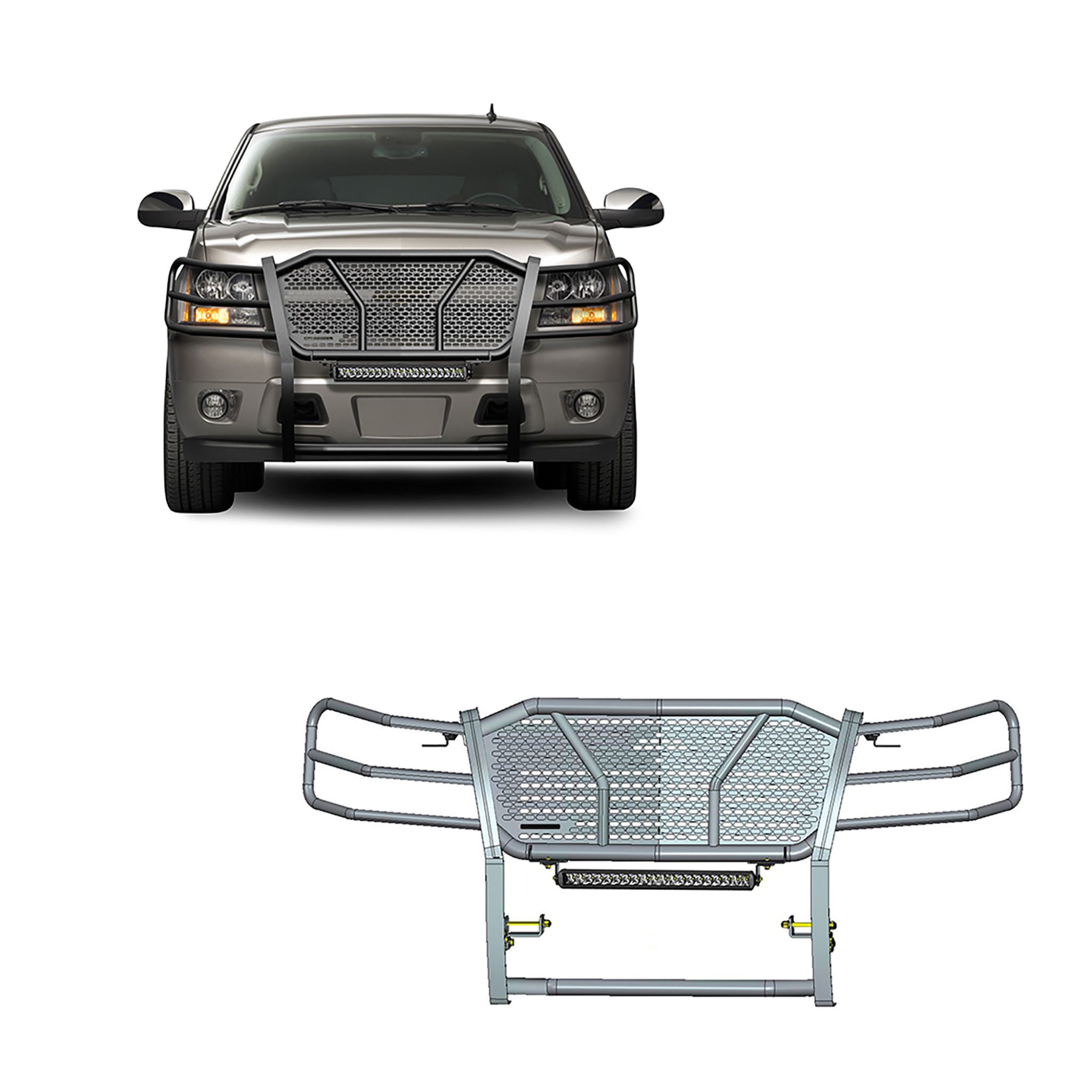 Black Horse Off Road Rugged Heavy Duty Grille Guard Kit Black Steel Modular Includes Single Row LED Light It May Interfere with Vehicles equipped with Emergency Braking Systems, Adaptive Cruise Control and Parking Sensors