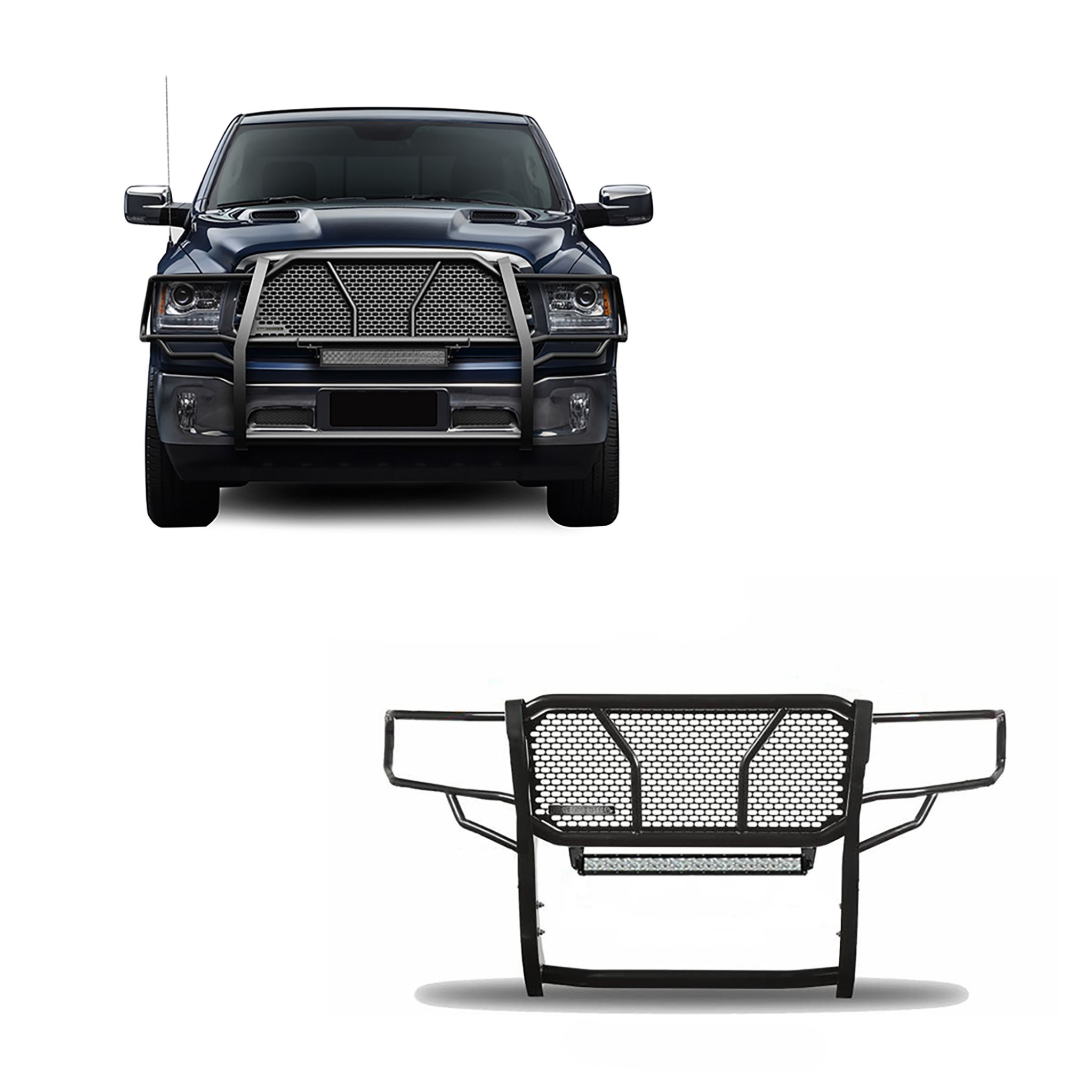 Black Horse Off Road Rugged Heavy Duty Grille Guard Kit Black Steel Modular Includes 1 20in Double Row LED Light Bar Trimming of lower bumper valance required on Sport models Excl. Rebel & Warlock Trims & Models with 1 Piece Plastic Bumper Cover It May Interfere with Vehicles equipped with Emergency Braking Systems, Adaptive Cruise Control and Parking Sensors