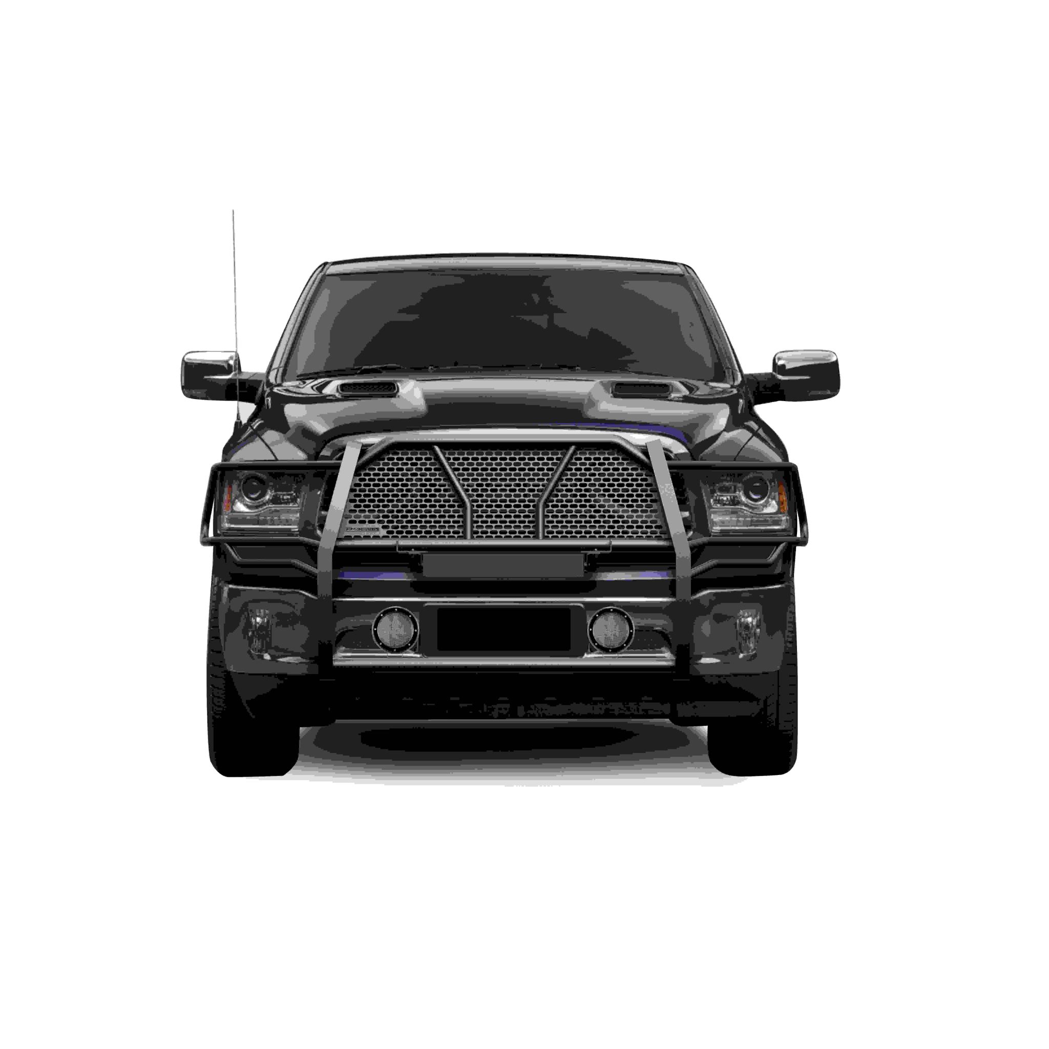 Black Horse Off Road Rugged Heavy Duty Grille Guard Kit Black Steel Modular Pair of 5.3" Dia. LED Flood Lights w/ Black Trim Rings Wiring Harness and Switch Trimming of lower bumper valance required on Sport models Excl. Rebel & Warlock Trims & Models with 1 Piece Plastic Bumper Cover It May Interfere with Vehicles equipped with Emergency Braking Systems, Adaptive Cruise Control and Parking Sensors