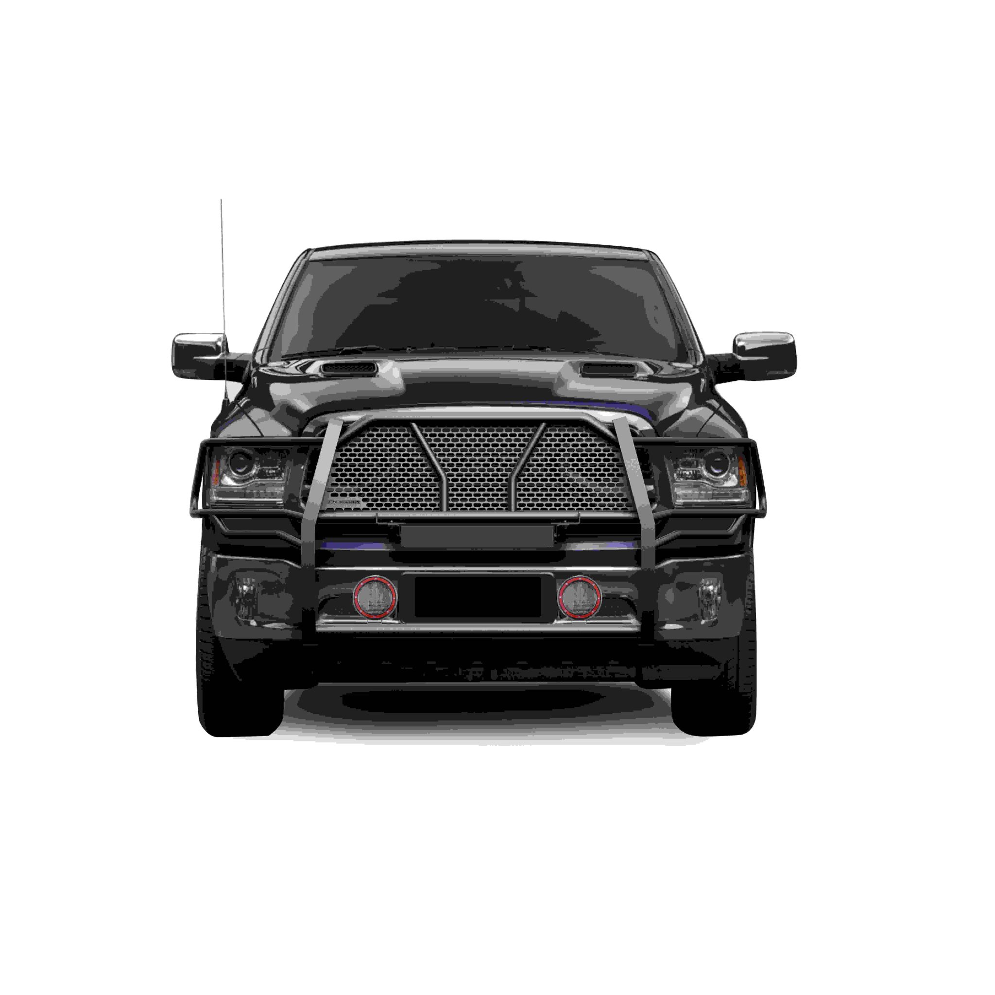 Black Horse Off Road Rugged Heavy Duty Grille Guard Kit Black Steel Modular Pair of 5.3" Dia. LED Flood Lights w/ Red Trim Rings Wiring Harness and Switch Trimming of lower bumper valance required on Sport models Excl. Rebel & Warlock Trims & Models with 1 Piece Plastic Bumper Cover It May Interfere with Vehicles equipped with Emergency Braking Systems, Adaptive Cruise Control and Parking Sensors
