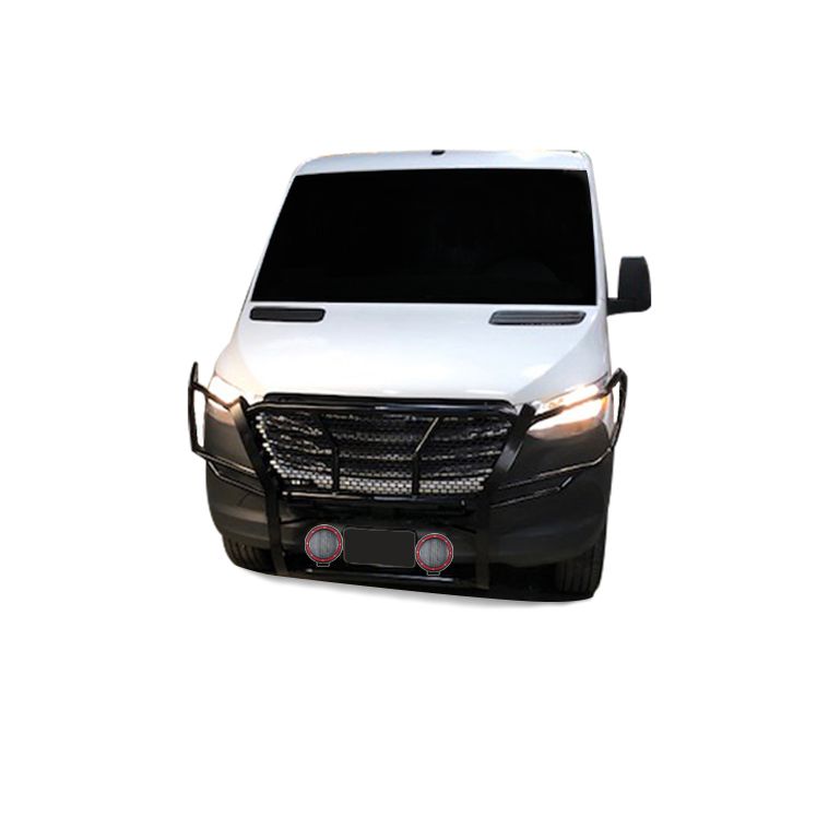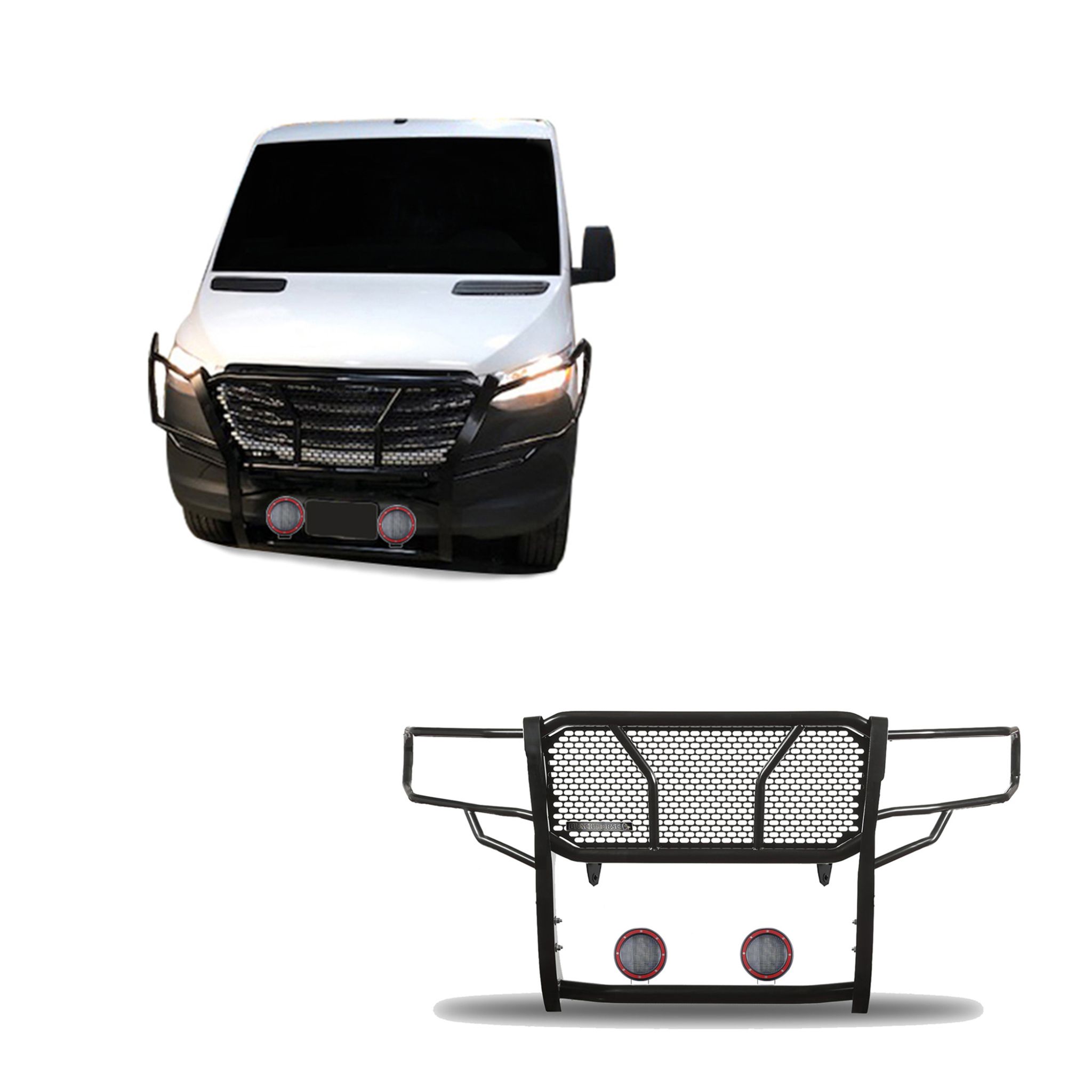 Black Horse Off Road Rugged Heavy Duty Grille Guard Kit Black Steel Modular Box 2: 25.35 lbs, 43.30, 18.11, 11.22 inchs & Pair of 5.3" Dia. LED Flood Lights w/ Red Trim Rings Wiring Harness and Switch It May Interfere with Vehicles equipped with Emergency Braking Systems, Adaptive Cruise Control and Parking Sensors
