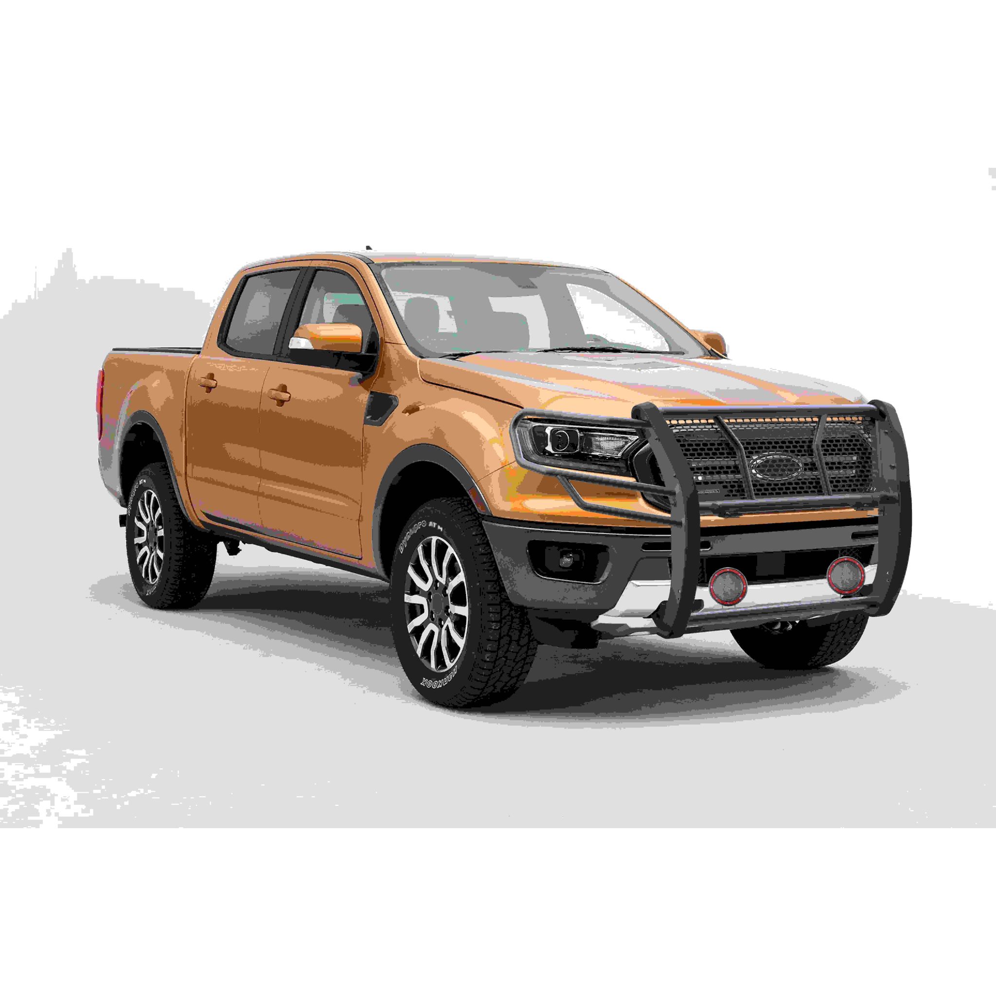 Black Horse Off Road Rugged Heavy Duty Grille Guard Kit Black Steel Modular Pair of 5.3" Dia. LED Flood Lights w/ Red Trim Rings Wiring Harness and Switch It May Interfere with Vehicles equipped with Emergency Braking Systems, Adaptive Cruise Control and Parking Sensors