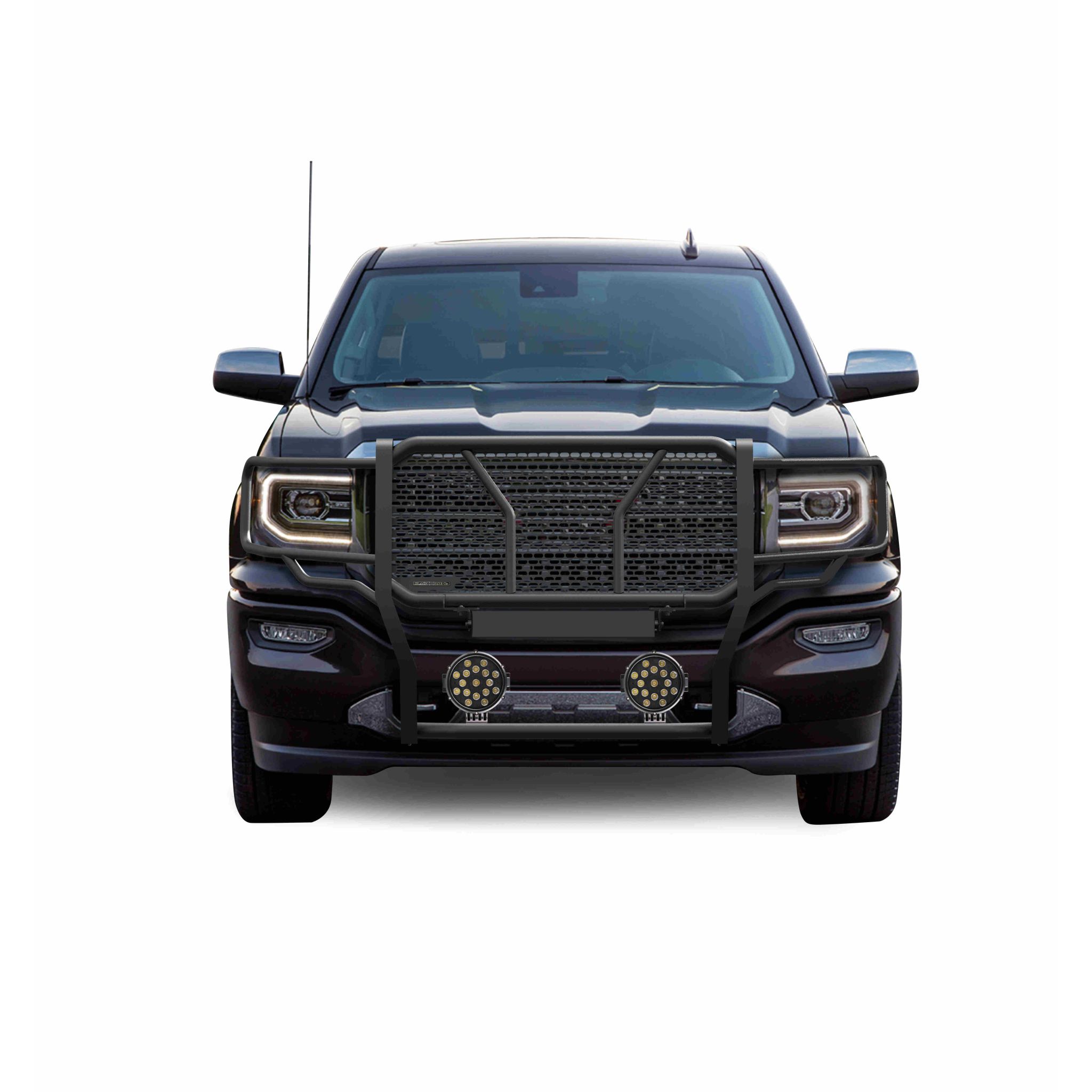 Black Horse Off Road Rugged Heavy Duty Grille Guard Kit Black Steel Modular Wings box: 26.01 lbs, 36.22 x 24.41 x 8.66 & Incl. pair of 7.0" Dia. LED Lights w/ Black Trim Rings w/ Wiring Harness and Switch Excl. Denali & Incl. 2019 Sierra 1500 Limited It May Interfere with Vehicles equipped with Emergency Braking Systems, Adaptive Cruise Control and Parking Sensors