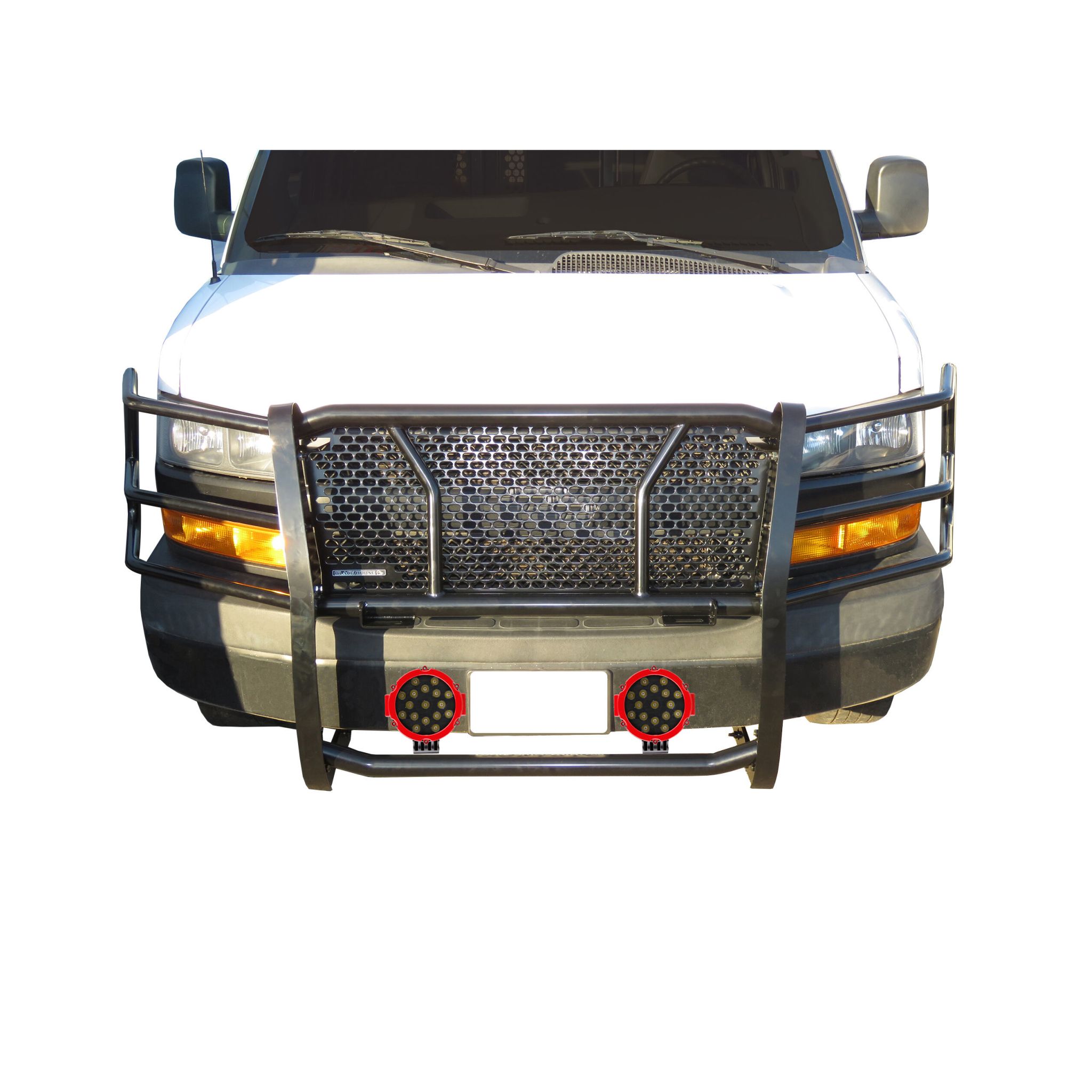 Black Horse Off Road Rugged Heavy Duty Grille Guard Kit Black Steel Modular Box 2: 45.85 lbs, 36x21x13 inches & Incl. pair of 7.0" Dia. LED Lights w/ Red Trim Rings w/ Wiring Harness and Switch It May Interfere with Vehicles equipped with Emergency Braking Systems, Adaptive Cruise Control and Parking Sensors