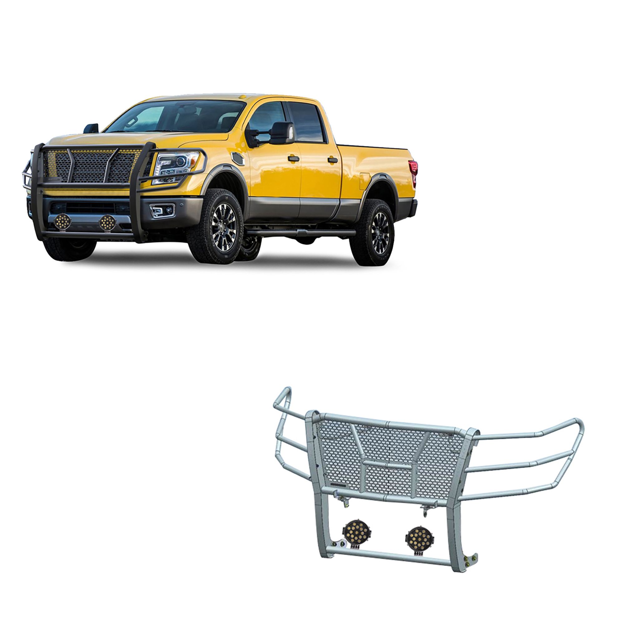Black Horse Off Road Rugged Heavy Duty Grille Guard Kit Black Steel Modular Box 2: 30 lbs, 50.39, 22.04, 11.81 inchs & Incl. pair of 7.0" Dia. LED Lights w/ Black Trim Rings w/ Wiring Harness and Switch Incl. Diesel and Gas Engine It May Interfere with Vehicles equipped with Emergency Braking Systems, Adaptive Cruise Control and Parking Sensors