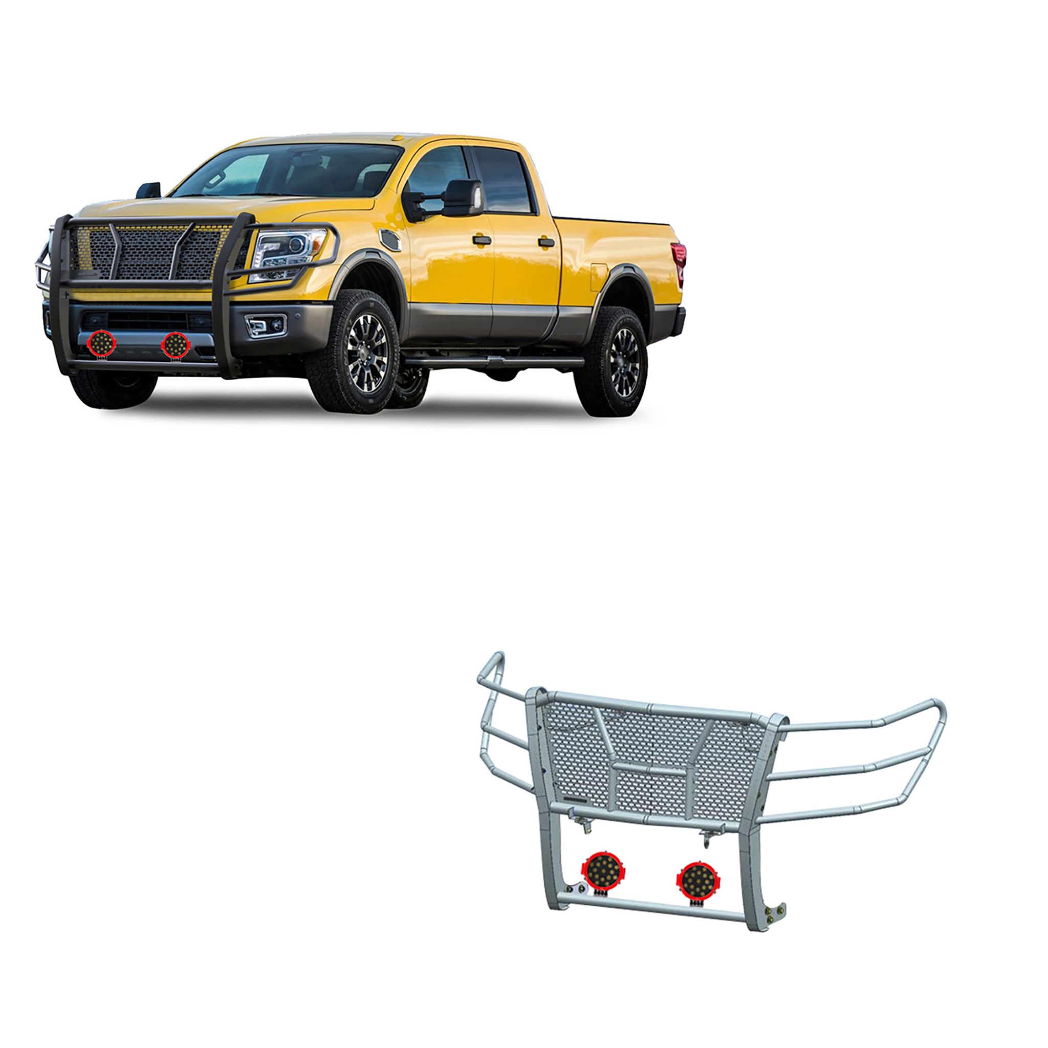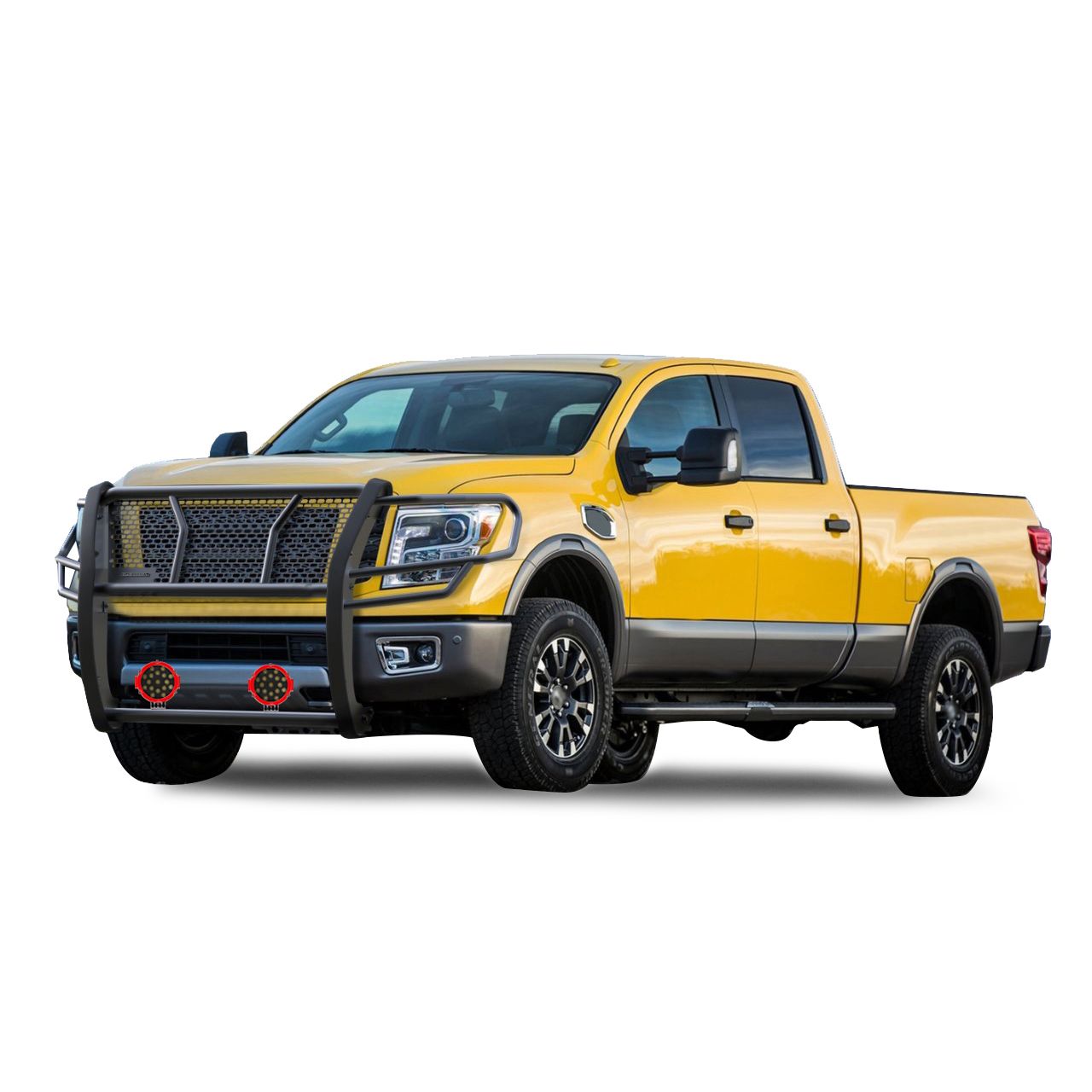 Black Horse Off Road Rugged Heavy Duty Grille Guard Kit Black Steel Modular Box 2: 30 lbs, 50.39, 22.04, 11.81 inchs & Incl. pair of 7.0" Dia. LED Lights w/ Red Trim Rings w/ Wiring Harness and Switch Incl. Diesel and Gas Engine It May Interfere with Vehicles equipped with Emergency Braking Systems, Adaptive Cruise Control and Parking Sensors