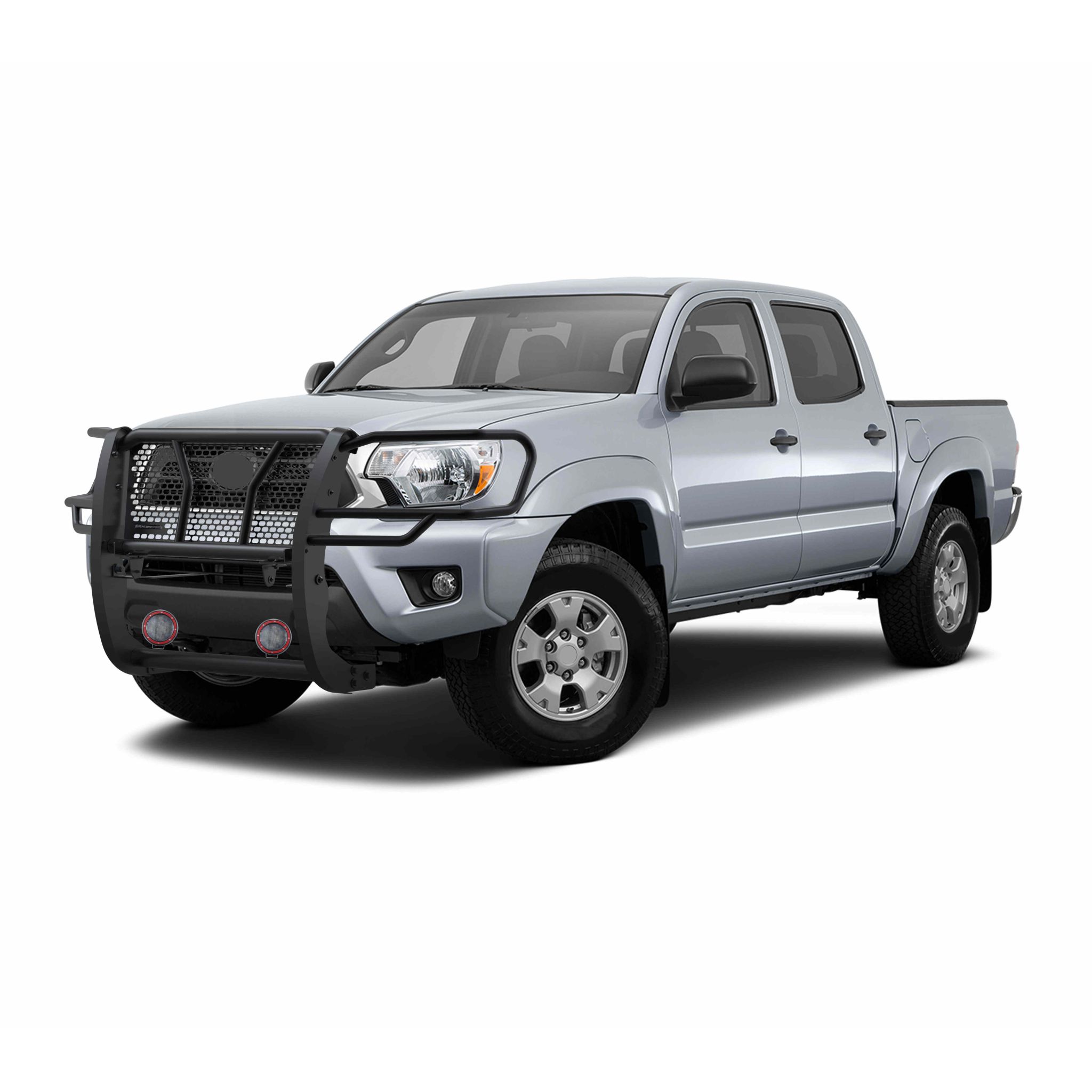Black Horse Off Road Rugged Heavy Duty Grille Guard Kit Black Steel Modular Pair of 5.3" Dia. LED Flood Lights w/ Red Trim Rings Wiring Harness and Switch It May Interfere with Vehicles equipped with Emergency Braking Systems, Adaptive Cruise Control and Parking Sensors