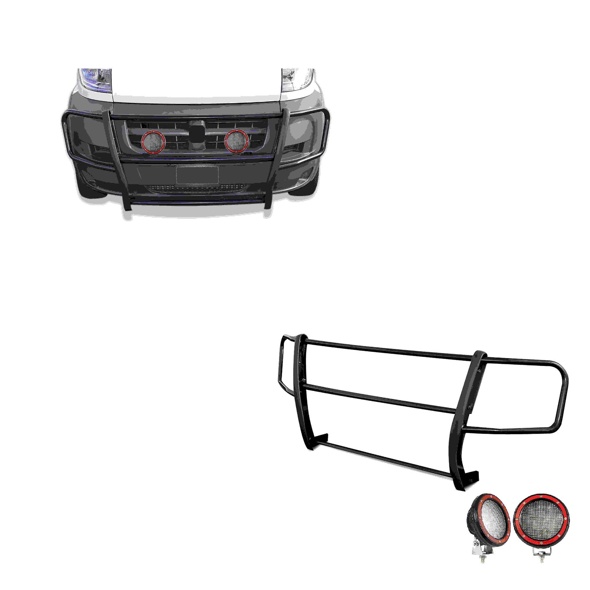 Black Horse Off Road Spartan Grille Guard Kit Black Steel Modular Pair of 5.3" Dia. LED Flood Lights w/ Red Trim Rings Wiring Harness and Switch Excl. 21-22 models with optional ADAS and FCWS systems & Rebel & Warlock Trims It May Interfere with Vehicles equipped with Emergency Braking Systems, Adaptive Cruise Control and Parking Sensors