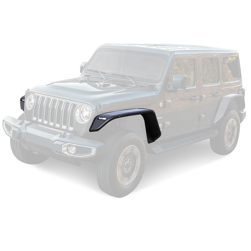 Black Horse Off Road Tubular Front Fender Flares Matte Black Steel With LED Turn Light , Daytime Running Light ?and Side Marker Incl. 2020-24 diesel engine & 21-24 4xe, 2 & 4 Doors
