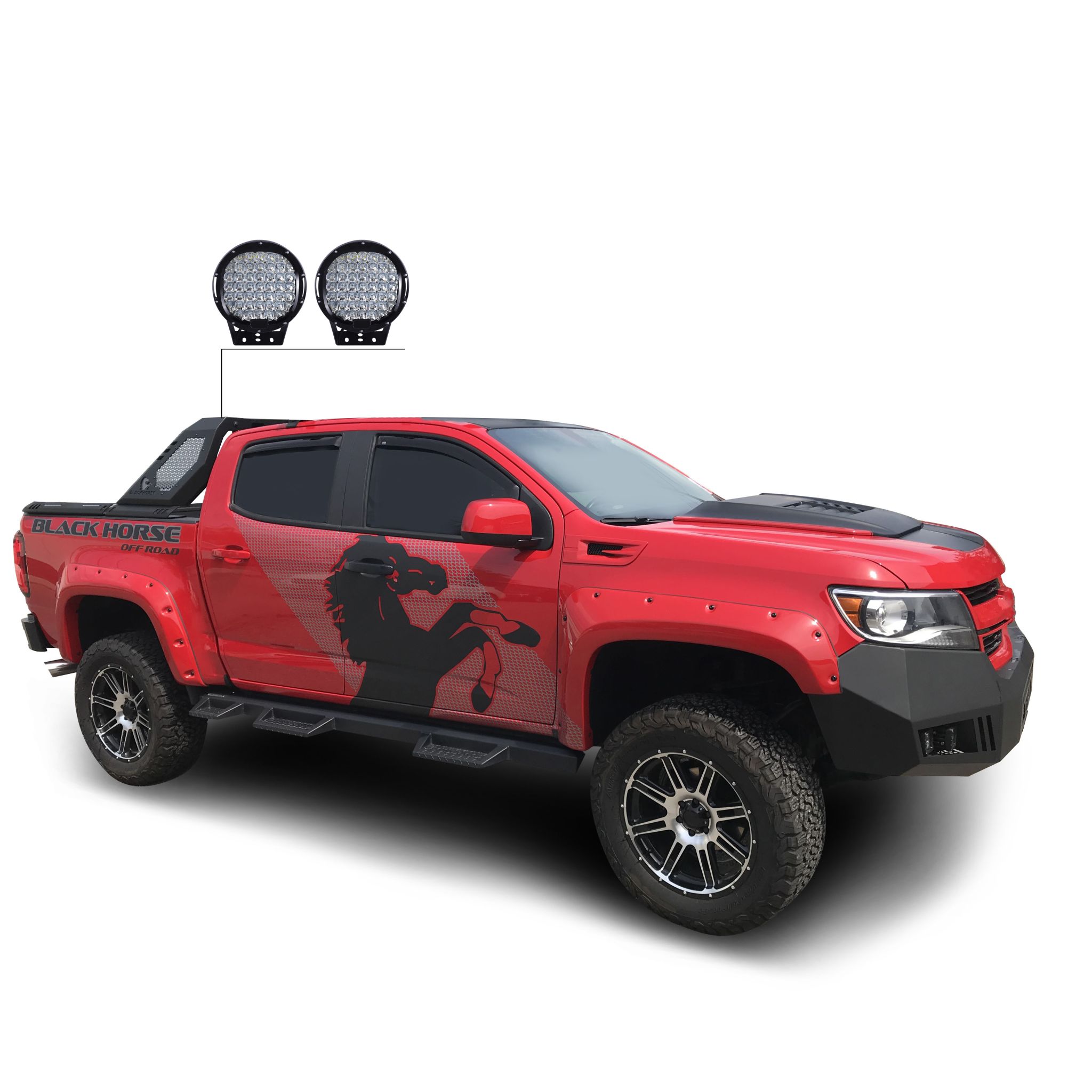 Black Horse Off Road Vigor Roll Bar Kit Black Steel Modular W/ Set of 9" Black Round LED Light Doesn't work with Tonneau cover WITH ADJUSTABLE SQUARE LIGHT Patented