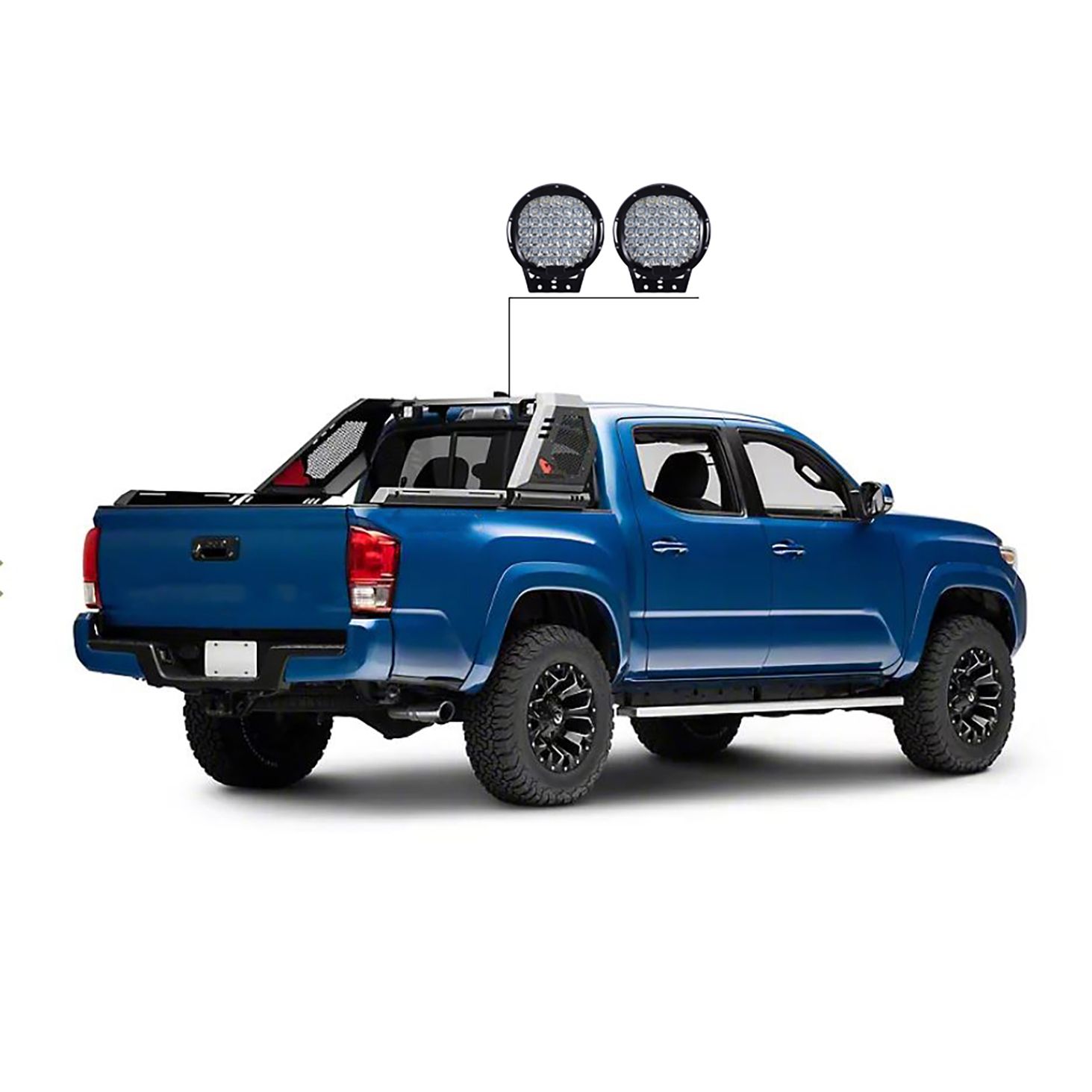 Black Horse Off Road Vigor Roll Bar Kit Black Steel Modular 2nd Box contains VI06 : 51lb, 34x12x7 W/ Set of 9" Black Round LED Light Doesn't work with Tonneau cover WITH ADJUSTABLE SQUARE LIGHT Patented