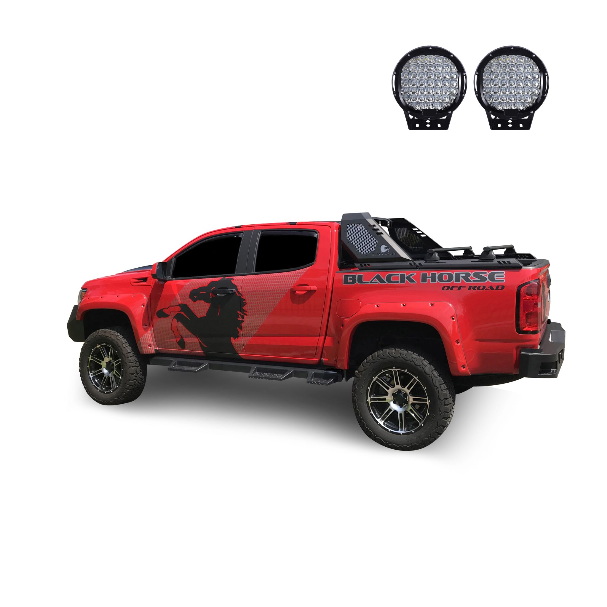 Black Horse Off Road Vigor Roll Bar W/ Cross Bar Kit Black Steel Modular Box 2 contains: 17.2 lbs, 80 x 7.67 x 5.31 inches W/ Set of 9" Black Round LED Light With Adjustable Square Light & Key