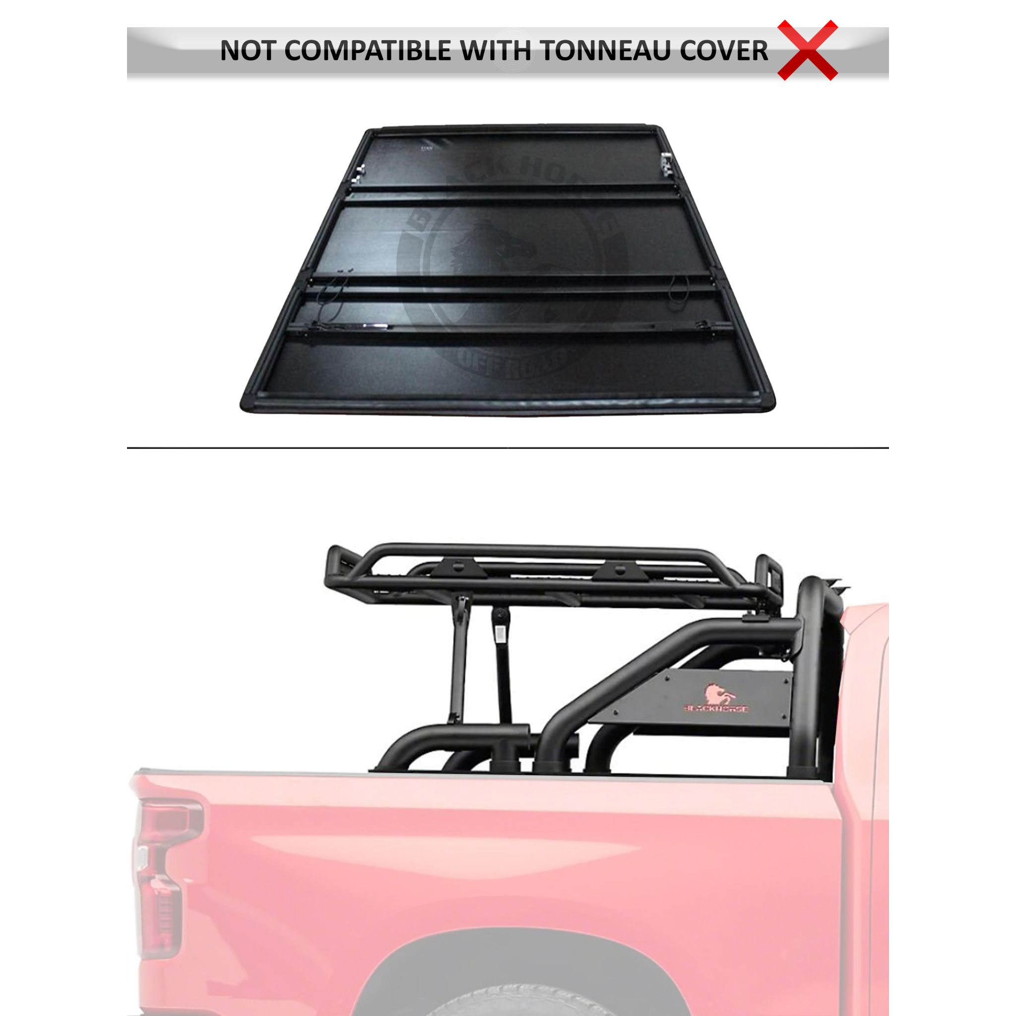 Black Horse Off Road Warrior Roll Bar Kit Black Steel Modular W/40" LED light Bar / Box1-roof basket: dimensions: 52.95 X 50.39 X 8.85inch Gross Weight : 65.69 pounds Needs Slight modification for Trucks equipped with Factory Rail System