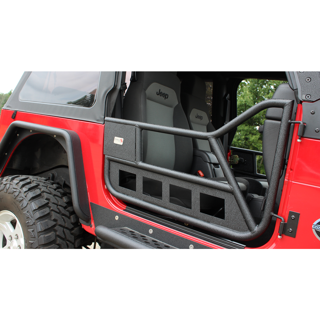 Embrace the thrill of doorless driving with Fishbone Offroad Front Tube Doors for your 1997-2006 Jeep Wrangler TJ & 2004-2006 Jeep Wrangler LJ.