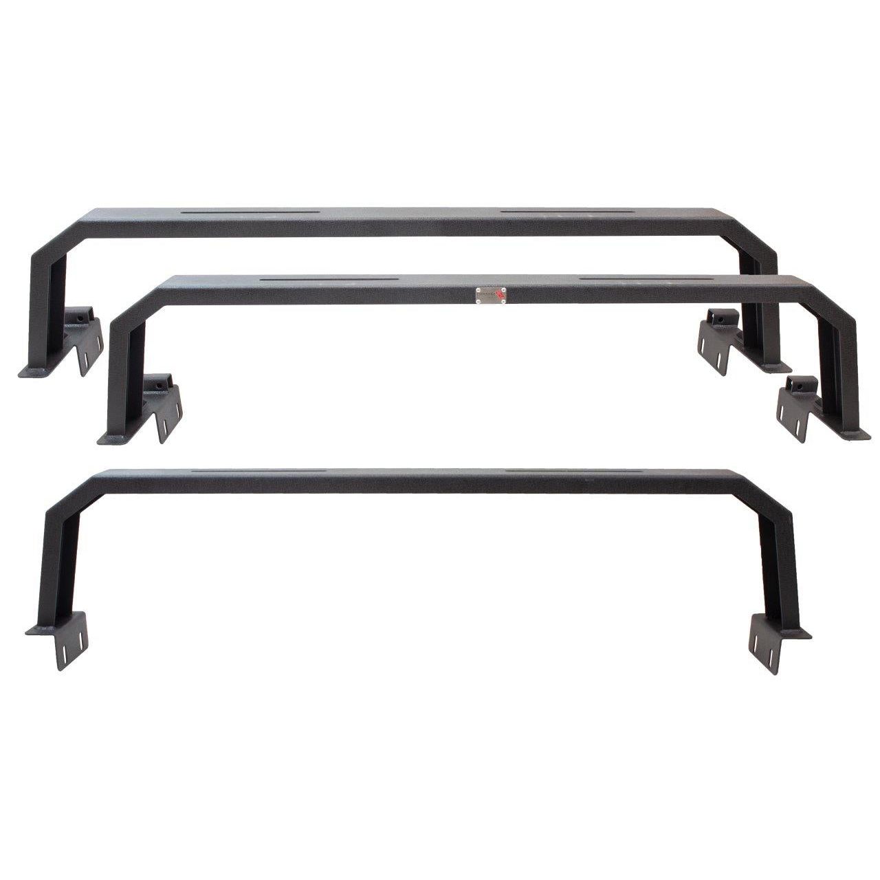 Fits 2005 to Current Ford F-150 & 2005 to Current Toyota Tundra Sits 12.5in high, off of bed side. Stands halfway up the rear window. Fits 5ft. beds. Made from 1/8in. Black Powder Coated Steel Stainless. Steel hardware. Safely supports up to 500lbs.