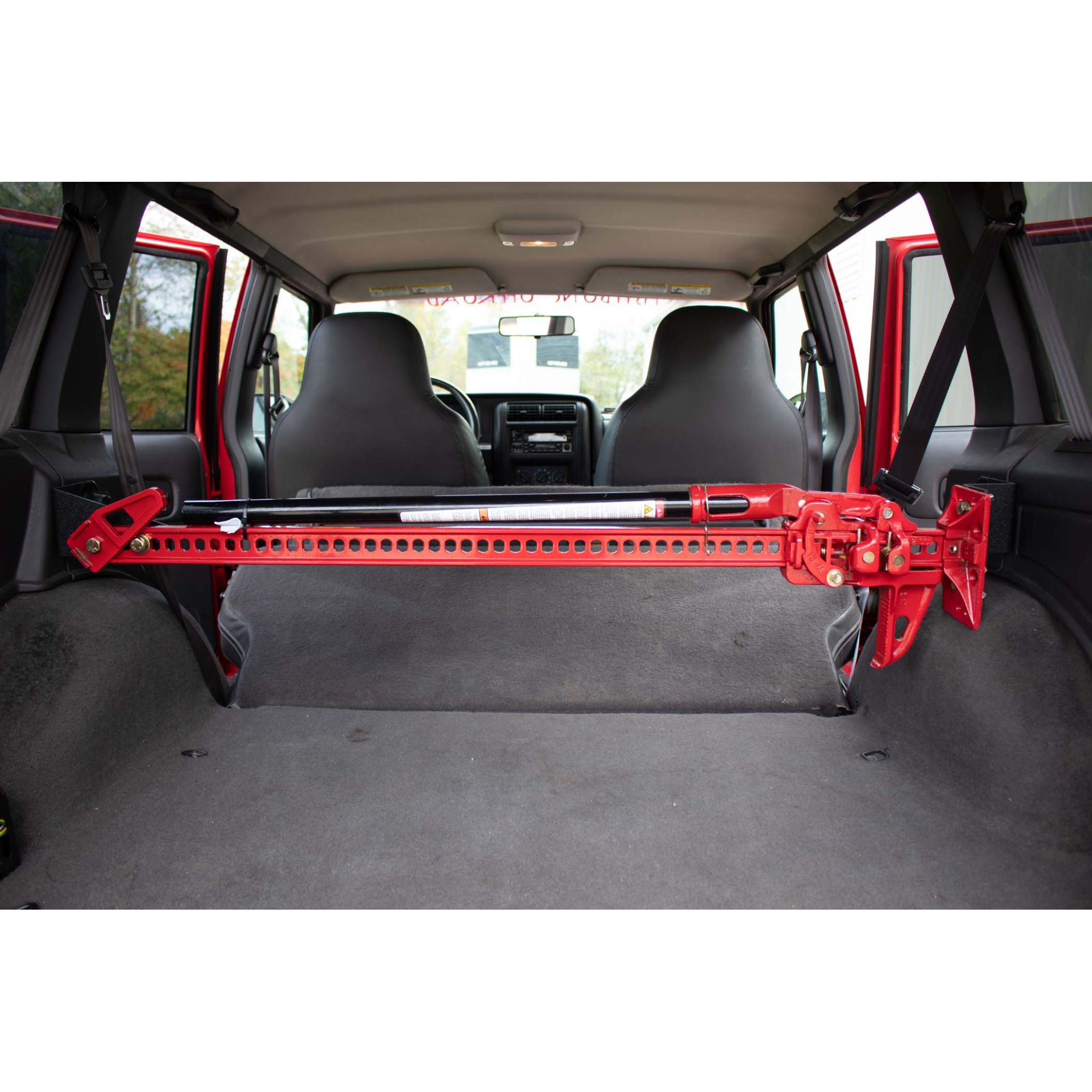 Secure and accessible Hi-Lift Jack storage for 1984-2001 Jeep Cherokee XJs.