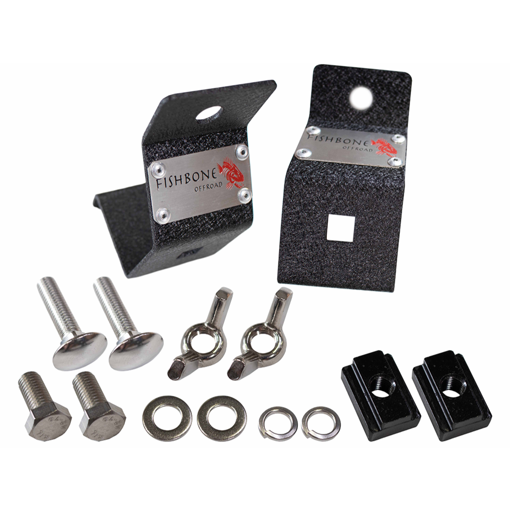 Fits 2005+ Toyota Tacoma. Easy installation. Supports most Hi-Lift Jacks. Black Powder Coated. All hardware included. Hi-Lift Jack sold separately. Get your favorite. Hi-Lift jack out of the back seat of your Tacoma with this convenient mounting system for your trail rails!