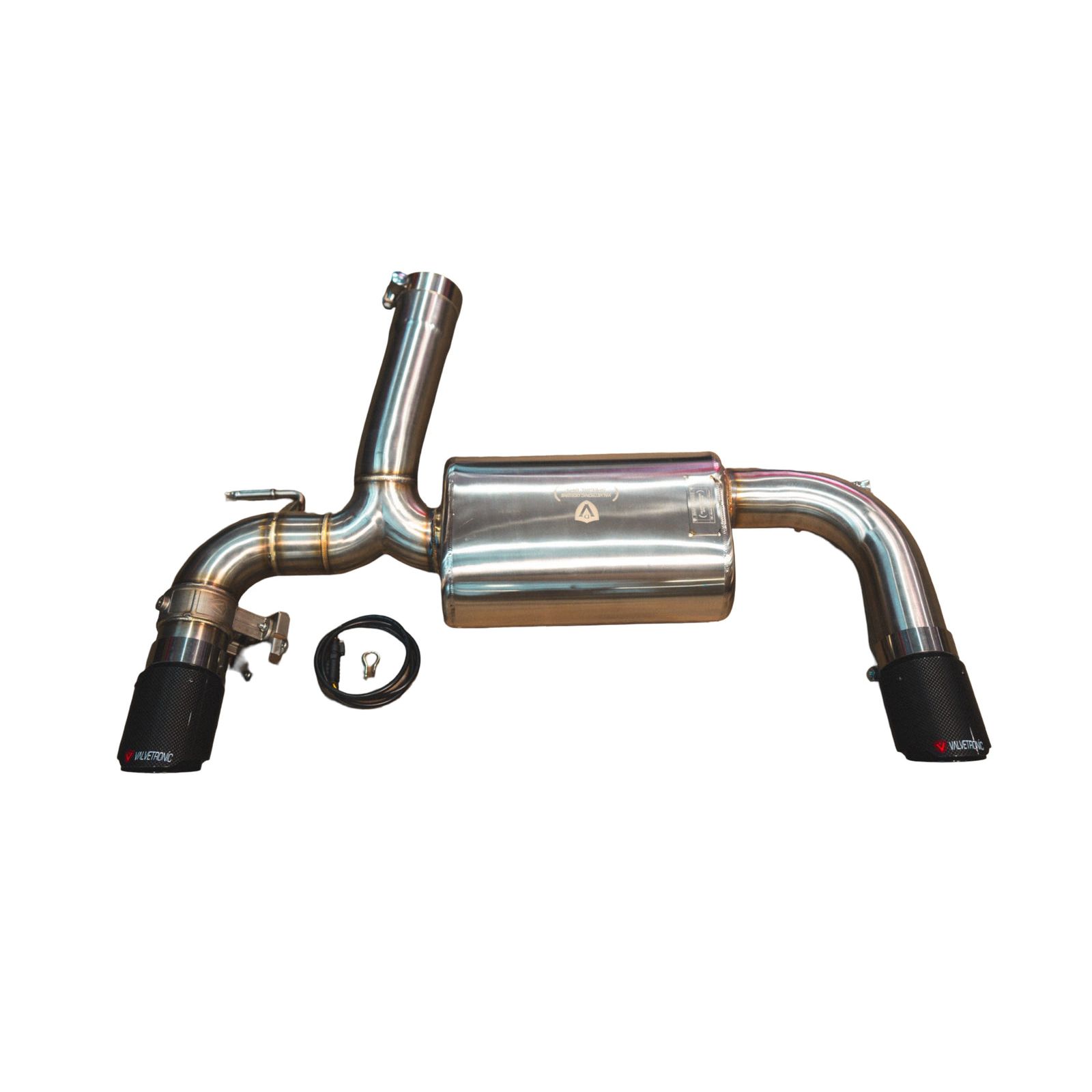 What is Included: Valved axle-back exhaust, Cast Y-pipe assembly, OEM-style electronic valves, Extension harness for factory valve integration, Sleeve-style exhaust tips, and Valvetronic forged carbon tips