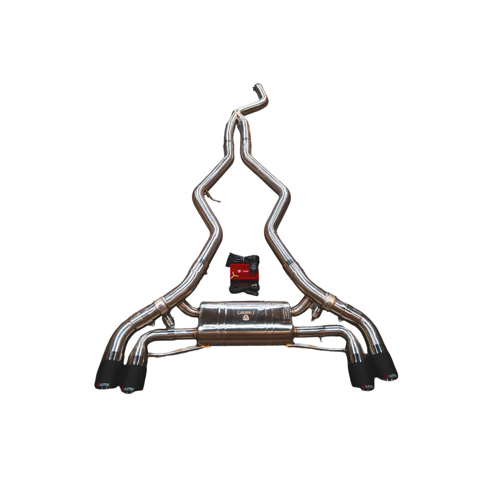 What is Included: Valved stainless catback exhaust system, Valve controller kit included, and Valvetronic forged carbon tips