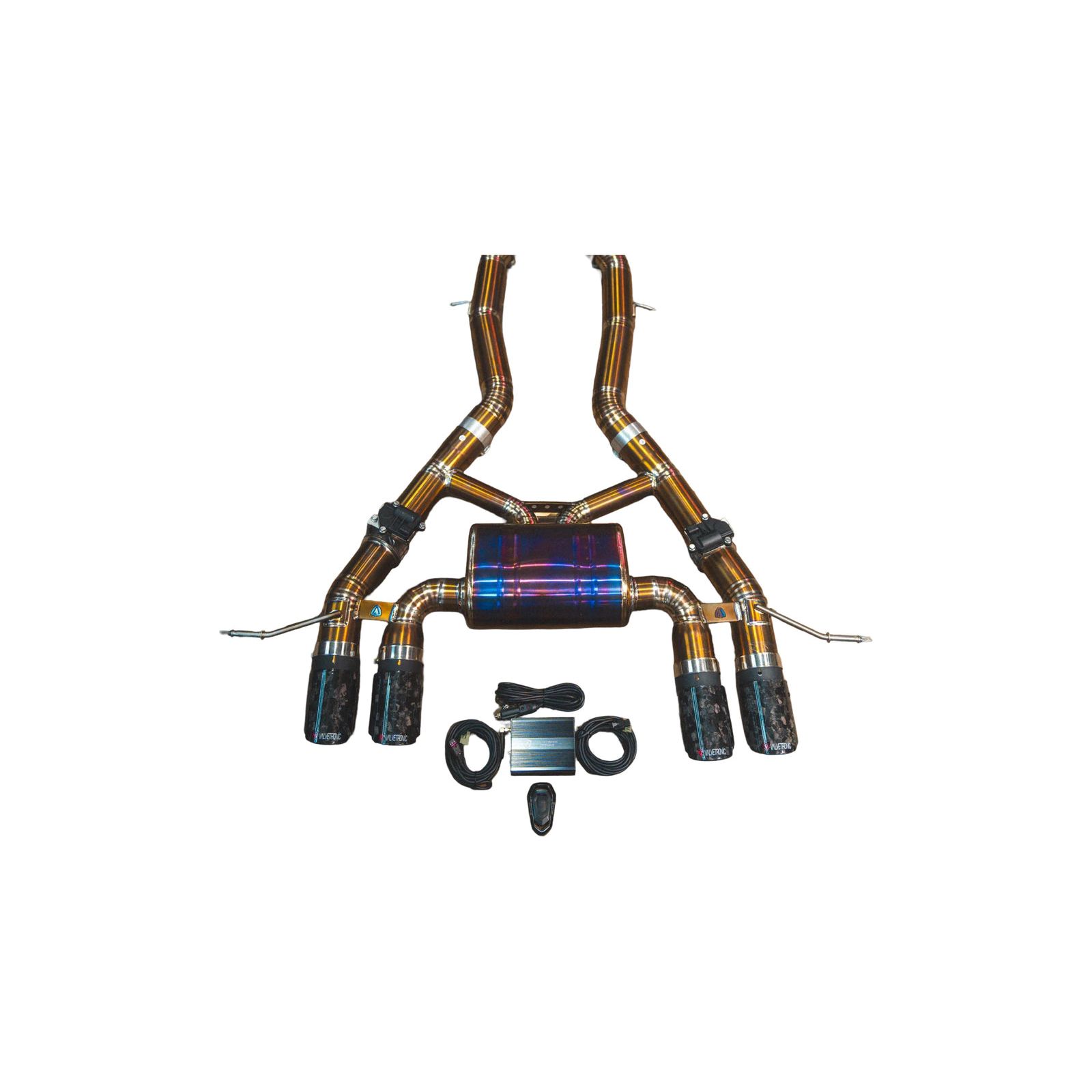 What is Included: Valved titanium axleback exhaust system, Valve controller kit included, and Valvetronic forged carbon tips