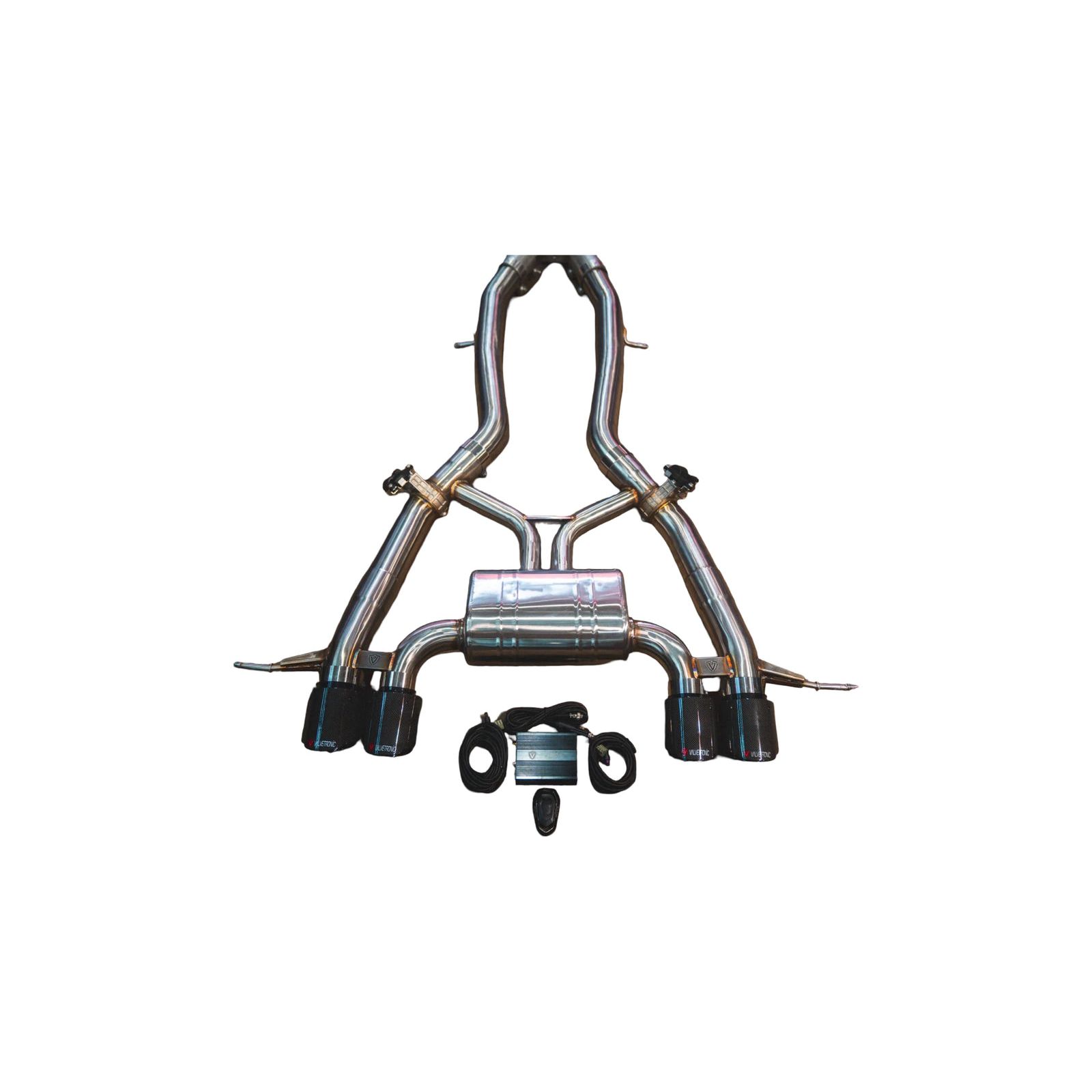 What is Included: Valved stainless axleback exhaust system, Valve controller kit included, and Valvetronic forged carbon tips