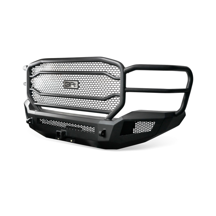 Introducing our sleek and modern front bumper, designed with ample clearance to enhance your vehicle's performance. This bumper contours and follows the body lines for a seamless look, featuring a one-piece wrap-around design that protects the grille and headlights. Constructed with a 2" main tube, it retains the factory camera and adaptive cruise control (ACC) for uninterrupted functionality. Integrated 2" receiver and shackle recovery mounts provide reliable recovery options. Light fitment includes a 30" dual row LED bar and 4 cube LEDs, ensuring excellent visibility in all conditions. Made from 3/16" and 1/4" cold roll steel, this bumper is non-winch compatible and features easy bolt-on installation. Finished with a durable two-stage light texture black powder coat, it offers long-lasting protection and a sleek appearance. Backed by a 3-year finish warranty and a limited lifetime warranty, this bumper is perfect for those seeking a combination of style, strength, and practicality.