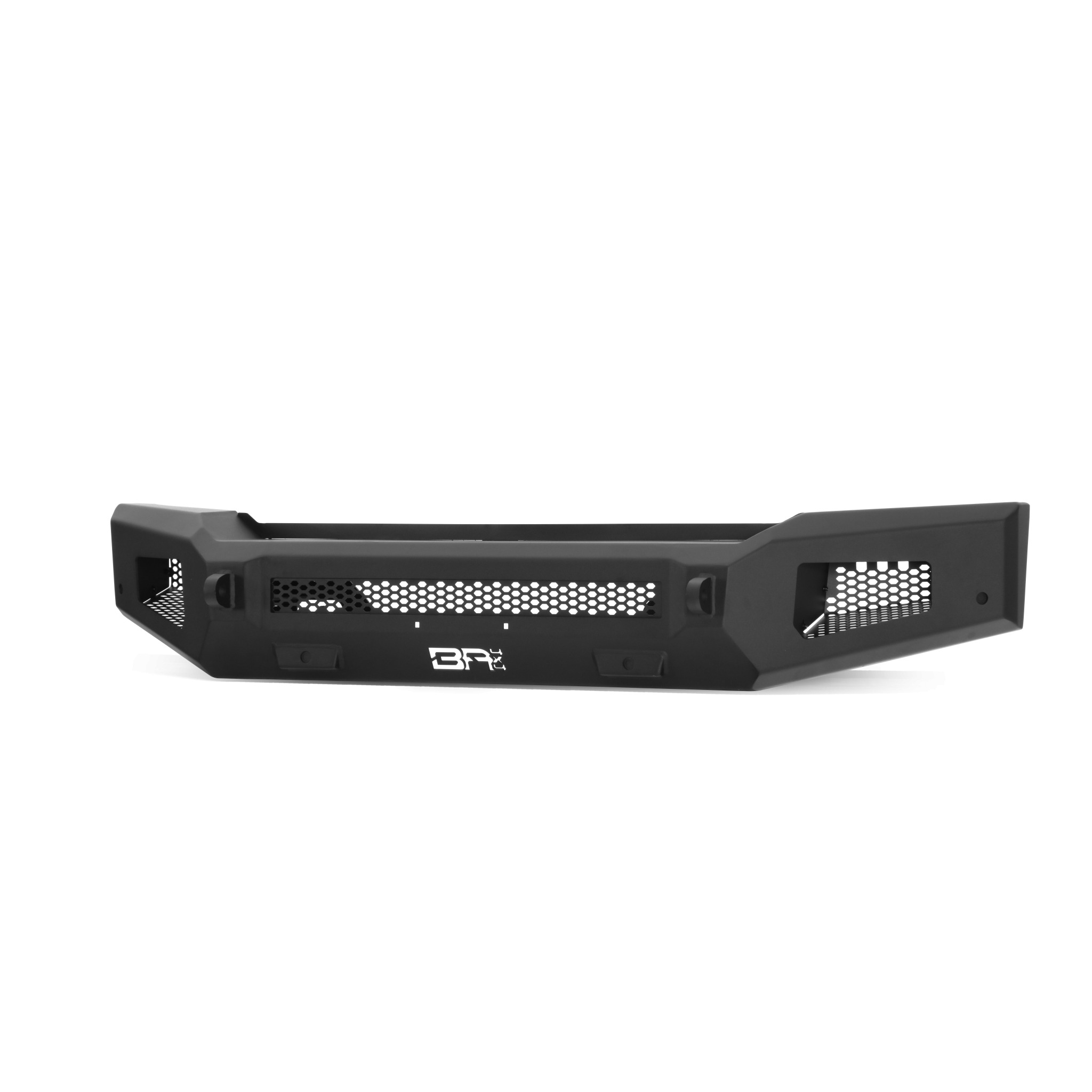 Introducing our premium front bumper, meticulously crafted from 3/16" and 1/4" cold roll steel for exceptional strength and durability. Designed for easy bolt-on installation, this bumper is OE sensor compatible, ensuring seamless integration with your vehicle's existing systems. It features two welded D-ring mounts for reliable recovery operations and is non-winch compatible, making it perfect for those who don't require winch functionality. The bumper is finished with a two-stage light texture in black, offering both style and long-lasting protection. For diesel engines, an intercooler shroud is required, while it remains optional for gas engines (PN: GM-5966). Light fitment options include a 30" dual row LED bar and 2 cube LEDs, providing excellent visibility during nighttime adventures. Ideal for off-road enthusiasts and heavy-duty users, this bumper is built to withstand the toughest conditions while providing a sleek and practical design.
