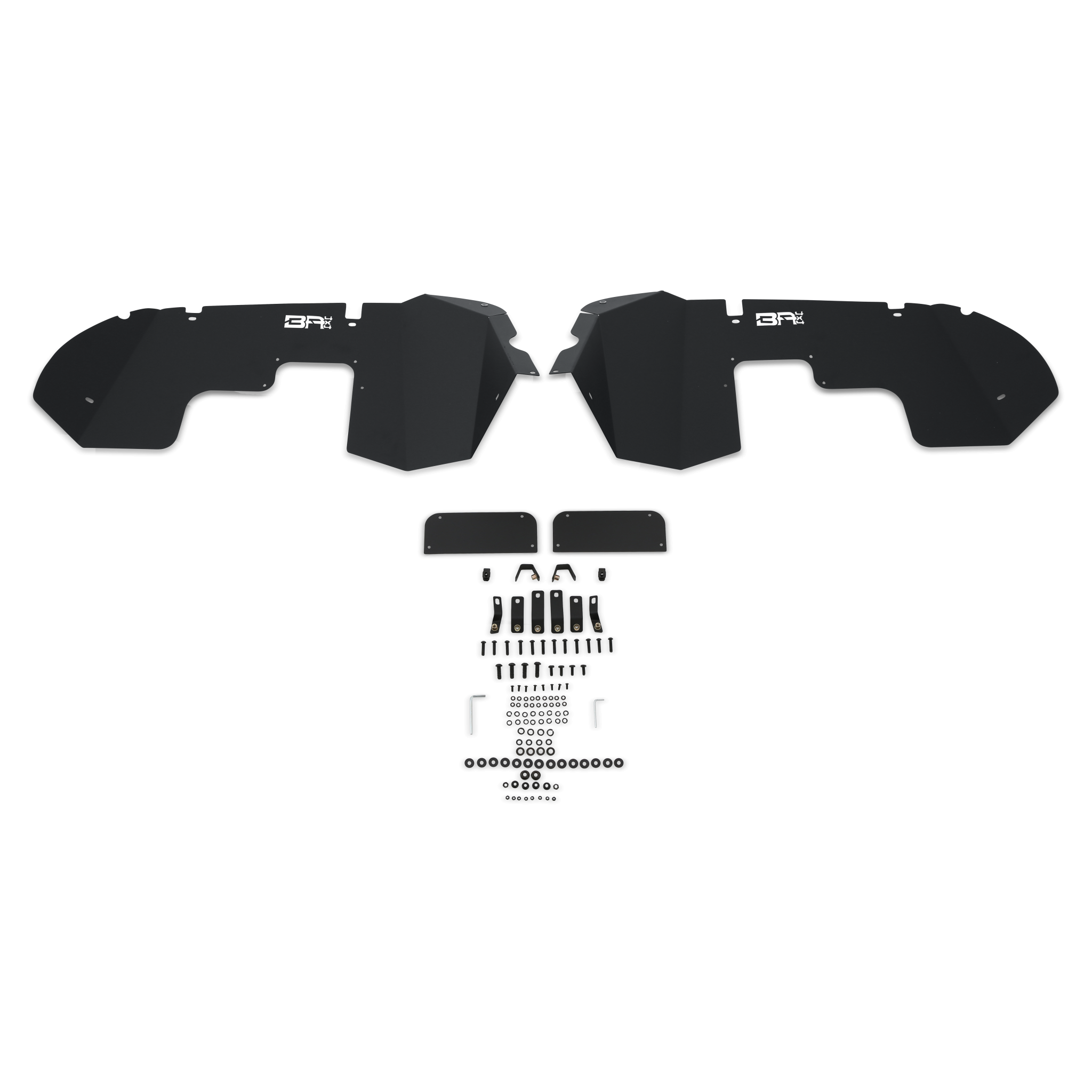 Upgrade your vehicle with this versatile accessory, designed for easy bolt-on installation and compatibility with BA 4×4 fender flares. Featuring a removable panel to accommodate most aftermarket hose reservoir shocks, this accessory ensures your engine bay remains protected from mud and debris. The two-stage powder coat light texture black finish provides both durability and a sleek appearance. Enhance your vehicle's functionality and style with this high-quality addition today!
