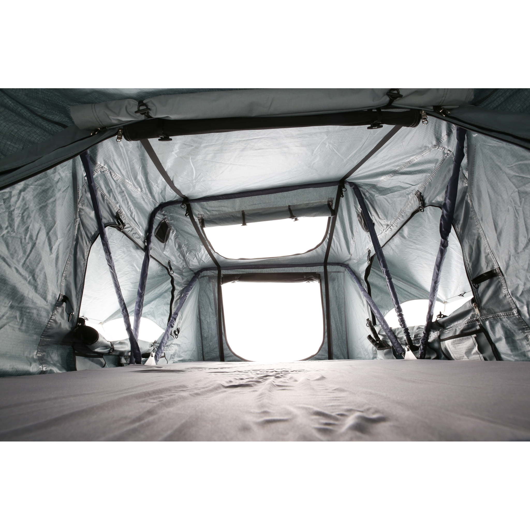Introducing our versatile 3-season tent, designed to comfortably sleep 2-3 people. When open, the tent measures 48" x 110" x 50", with a spacious sleeping area of 55" x 92.5". When closed, it compacts to 48" x 43" x 12" and weighs 108 lbs. The tent has a weight capacity of 460 lbs, while the ladder supports up to 330 lbs.