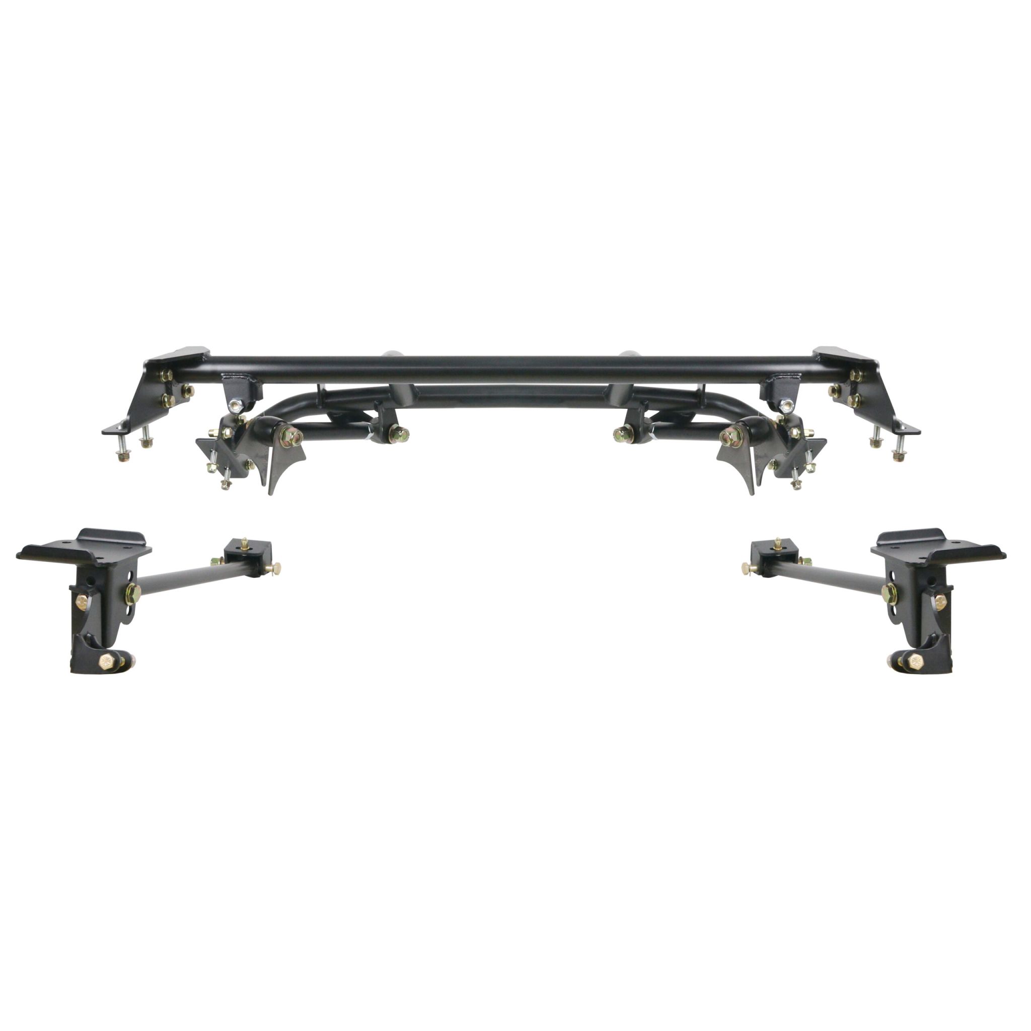 Bolt-On 4-Link with double adj. bars for 1962-1967 Chevy II Nova. Includes R-Joints, bars, bolt-on cradle, axle brackets and hardware. Powder coated black. For use with Shockwaves or Coil-Overs, sold separately.