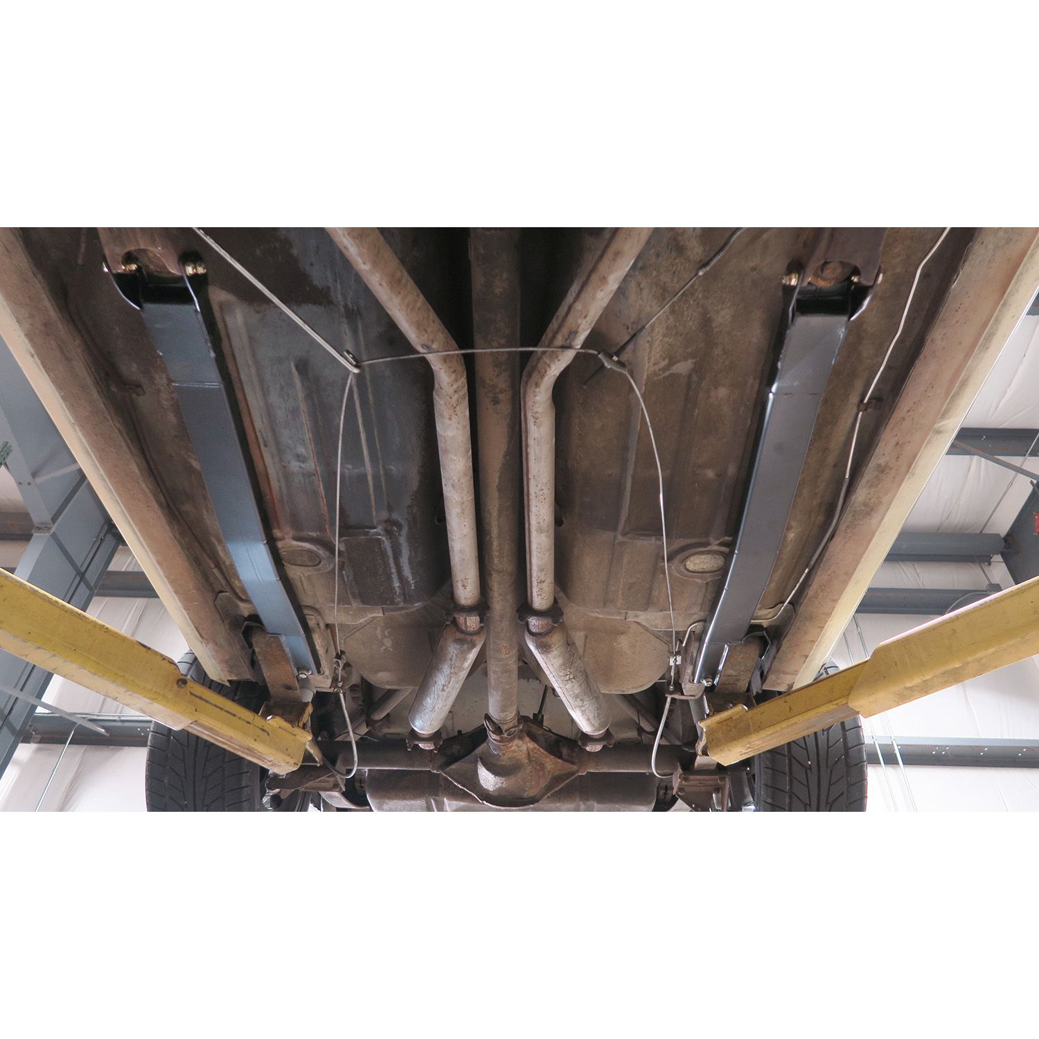Bolt-On subframe connectors for 1967-1969 GM F-Body. Includes a pair of connectors powder coated satin black with hardware.
