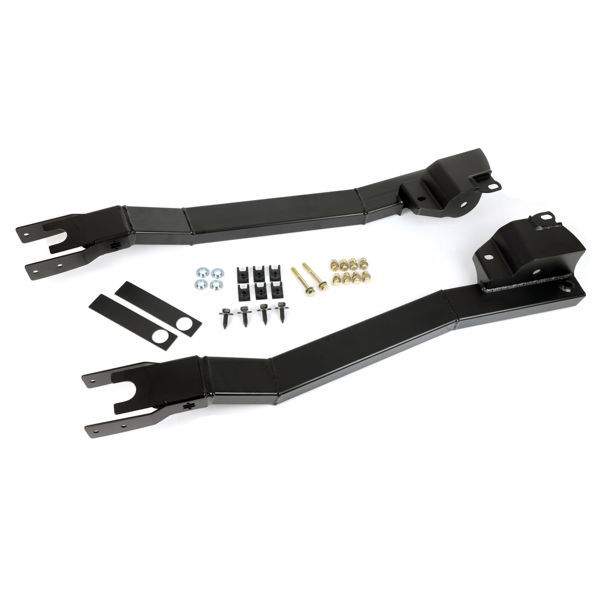 Bolt-On subframe connectors for 1970-1973 GM F-Body. Includes a pair of connectors powder coated satin black with hardware.