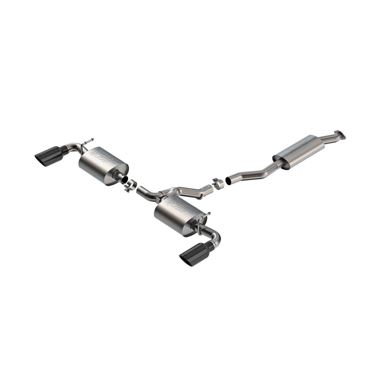 EXCEPT Hybrid models. This 2.25" diameter BORLA® Cat-Back™ system delivers the classic S-Type sound with no drone inside the vehicle. It features dual mufflers with one 4" round black chrome on T-304 stainless tip on each muffler. Using BORLA® Stainless Steel Polish p# 21461 is NOT recommended with these black chrome tips. We suggest cleaning the tips with hot water and a microfiber cloth. A system with bright chrome on T-304 stainless steel tips is also available. BORLA® Cat-Back™ and Axle-Back exhaust systems feature patented straight-through and multi-core technology designed to unleash hidden horsepower. Increased exhaust velocity adds power, driving excitement, fuel economy, and the distinctive BORLA® Sound of Power respected by motoring enthusiasts everywhere. Each system is built from premium high-quality austenitic T-304 stainless steel, superior to T-400 series knockoffs (such as 409), to give you the absolute best in performance and durability. Ultra-smooth mandrel bends ensure maximum flow & power, and precision computer numerical control (CNC) manufacturing ensures an accurate fit. Give your RAV4 the power and sound it deserves, bolt on a BORLA®. Best of all, BORLA® stands behind every system with a Million-Mile Warranty. Just what you'd expect from the world's most experienced (and most winning) exhaust brand.