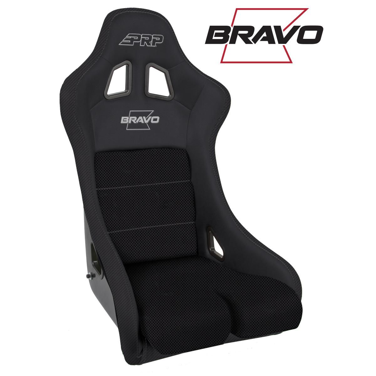The Bravo Composite Seat is Built for Off-Road with added comfort and features. The biggest difference to this seat is the lower side bolsters that taper off towards the front. These hold you in snug when while bouncing around, but make it easier to get in and out of the vehicle. The Bravo is built with off-road in mind, with thick dual-density foam all around for added comfort, and large harness slots that allow a fresh air hose to fit through. The seat features built in lumbar support for long trips or endurance races. A wider hip area fits Drivers with up to size 42? waist comfortably. FIA 8855-1999 approved for racing. Requires PRP composite seat mounts to install. Choose from these 4 Pre-Designed color selections Low, tapered sides provide good containment, while making it easier to get in/out Wider hip area makes it ideal for larger riders up to waist size 42 Larger shoulder harness slots allow room for fresh air hose Angled lap belt slots provides the proper angle to install lap belts