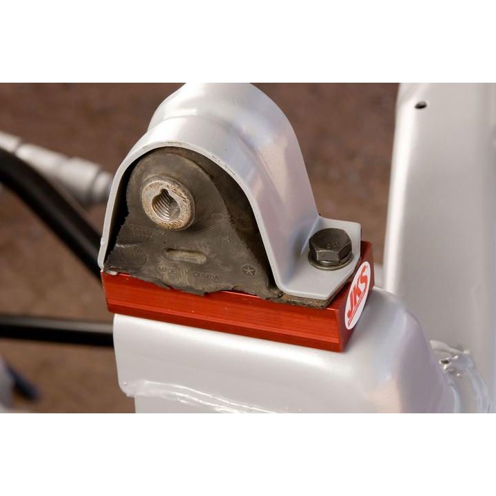 The right way to install a body lift on your Jeep Wrangler YJ is with a JKS budget motor mount lift kit. Simple, 1 in. spacers raise OE front motor mounts on chassis. Improves rear driveline angle by tilting transfer case output shaft towards the rear axle. Re-aligns engine fan with radiator shroud for proper cooling efficiency. Retains OE rubber bushings for vibration absorption. Machined from solid premium T6061-T6 aluminum and anodized to prevent oxidation. The complete, bolt-on kit includes zinc-plated hardware. Compatible with 4.0L, 4.2L and 2.5L engines.