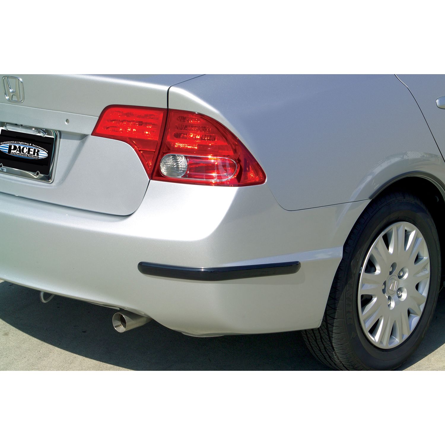 Pacers Deluxe Bumper Guards are an attractive method of protecting your vehicle from minor parking lot scrapes and scratches. Constructed of heavy duty, UV protected PVC they are finished in gloss black and install easily without drilling, using 3M self stick tape. Sold in pairs.
