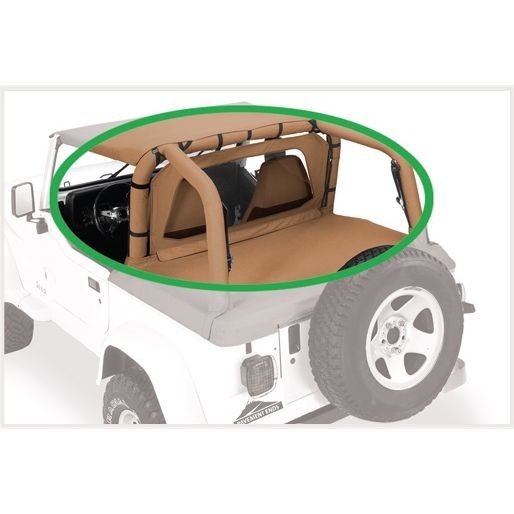 Designed to keep a majority of wind, rain, dust and debris from entering the cockpit of your Jeep. Manufactured with heavy-duty automotive grade vinyl fabric for year round use. Attaches to center hoop with durable nylon webbing straps and sturdy nylon buckles for a tight fit. Use with Sun Cap and Cab Curtain for a unique look and great protection from the elements.