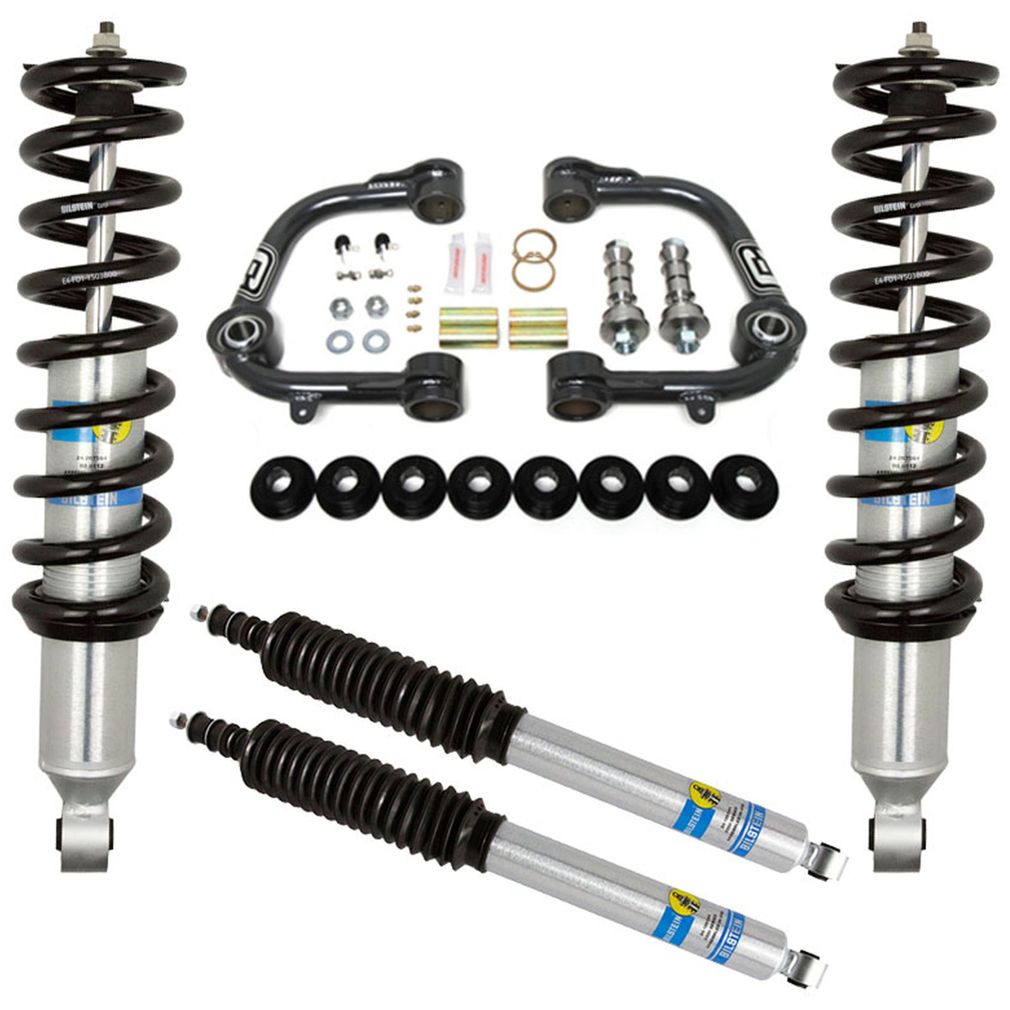 With Bilstein’s NEW 6112 line of adjustable shocks we’ve put together a great suspension kit for that customer looking to lift the front of their Tacoma, improve the ride quality both on and off-road all while staying within a price point that maximizes your gains. The new 6112 is on par with Toyota’s TRD Pro line of shocks that is a substantial upgrade over the standard OEM shocks. This kit gives you that and more with our uniball upper arms that also allow for more wheel travel and improve the geometry for better handling and alignment specs. Our arms increase caster and correct the camber curve compared to the stock cheap sheet metal arms. We combine these with Bilstein’s 5100 rear shocks that gain more wheel travel and improve the ride for everyday driving.