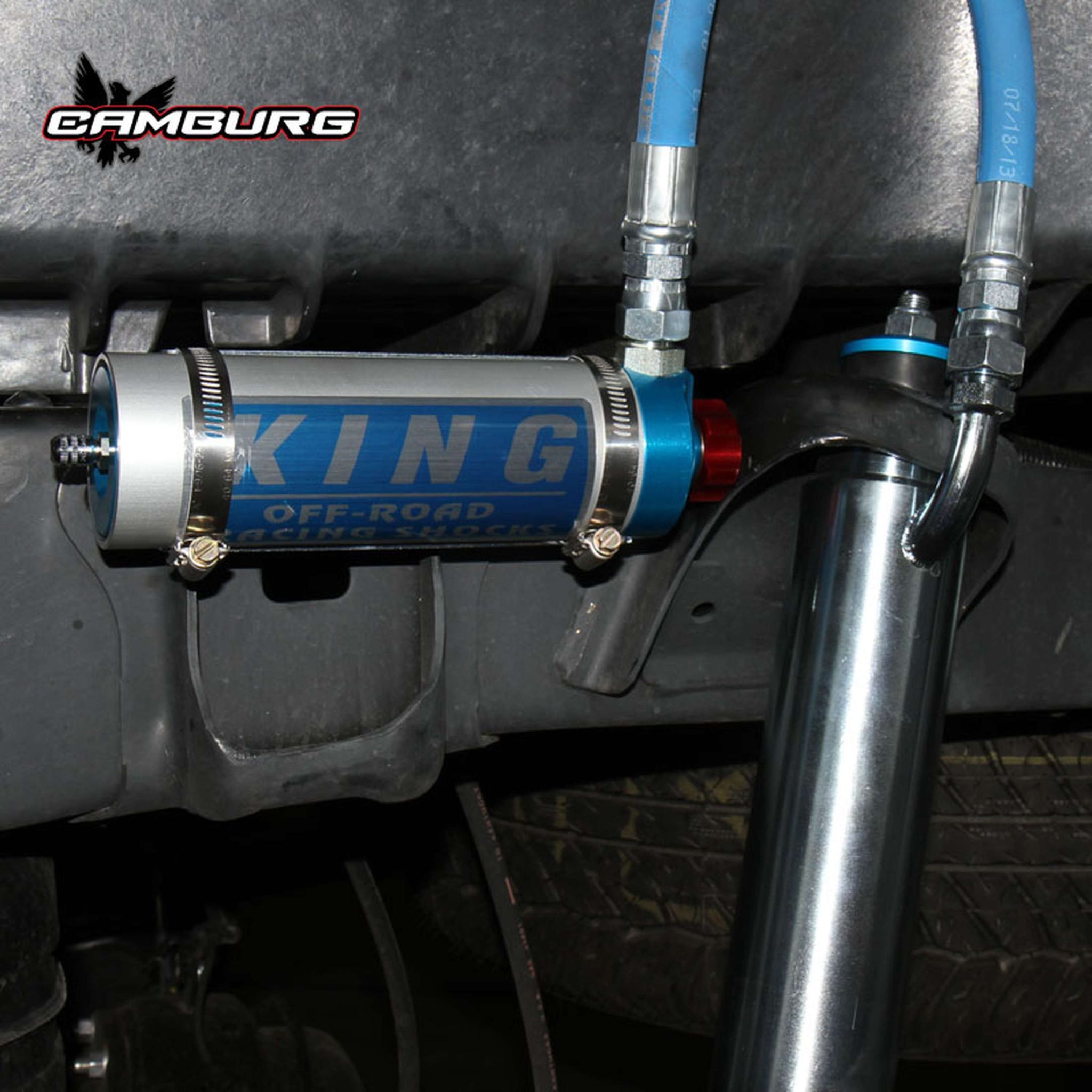 Our King 2.5 Performance kit for the Toyota Tacoma takes our leveling kit to the next level. We utilize Kings’s 2.5 series front coilovers with compression adjusters. This combination of parts not only improves the ride and handling on-road but more so off-road with the larger diameter shocks and external reservoirs. With the upper arms these shocks increase wheel travel. Improved ride both on and off-road Eliminates weak OEM upper ball-joint Increased wheel travel Corrected suspension geometry Made in the USA After lifting your truck, the stock upper arms become the limiting factor and hold back your suspensions performance. Our upper arms address these issues and more. You can choose between our tubular and billet uniball arms and our X-joint upper arms depending on your budget and type of use. We’re able to increase wheel travel with a part that is considerably stronger and will last longer under extreme conditions. We also engineered the arms with more caster and changed the camber curve to correct geometry so the vehicle aligns correctly and improves driving characteristics and handling both on and off-road. For more info on all our arms, check out their individual product pages to help make your choice. In the rear we go with a pair of King’s 2.5 remote res. shocks. They have a substantial increased oil capacity due to their size and have a lot more control and damping. The compression adjuster allows you to tune the shock softer and firmer depending on what you’re looking for and how you’re the truck. Since they are longer in length they increase rear wheel travel and articulation.