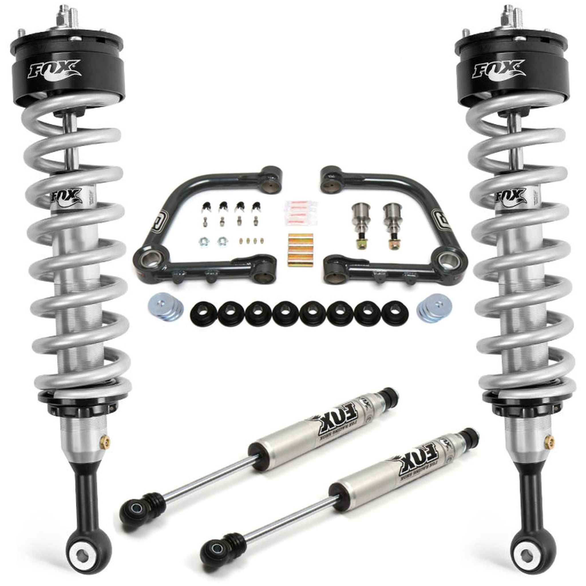 Our Camburg FOX 2.0 Trail Series kit is a great all around suspension system for your Toyota Landcruiser utilizing FOX's 2.0 series of shocks. FOX 2.0 Performance Series IFP Coilovers are valved specifically for your application, we are able to gain 0-2 inches of lift and increase wheel travel as well. These Factory Series shocks feature a smooth-bore, clear coated, zinc plated, honed seamless alloy body, black anodized 6061-T6 billet aluminum components, a 5/8" hard chrome plated heat treated alloy steel shaft and an internal reservoir design to separate shock oil from the high-pressure nitrogen. FOX direct replacement shocks deliver race-winning performance in a simple direct replacement bolt on shock. Each application has been rigorously tested by FOX engineers to maximize suspension travel and performance on and off the road. After lifting your truck, the stock upper arms become the limiting factor and hold back your suspensions performance. Our upper arms address these issues and more. We’re able to increase wheel travel with a part that is considerably stronger and will last longer under extreme conditions. We also engineered the arms with more caster and changed the camber curve to correct geometry so the vehicle aligns correctly and improves driving characteristics and handling both on and off-road. In the rear we go with a pair of FOX’s 2.0 Performance Series shocks. These shocks have a larger aluminum shock body which holds more oil for better shock performance offroad and have a firmer ride. 0-2" lift (front) Improved ride and handling Easy bolt-on installation Made in the USA Does not fit models with electronic self-leveling suspension.