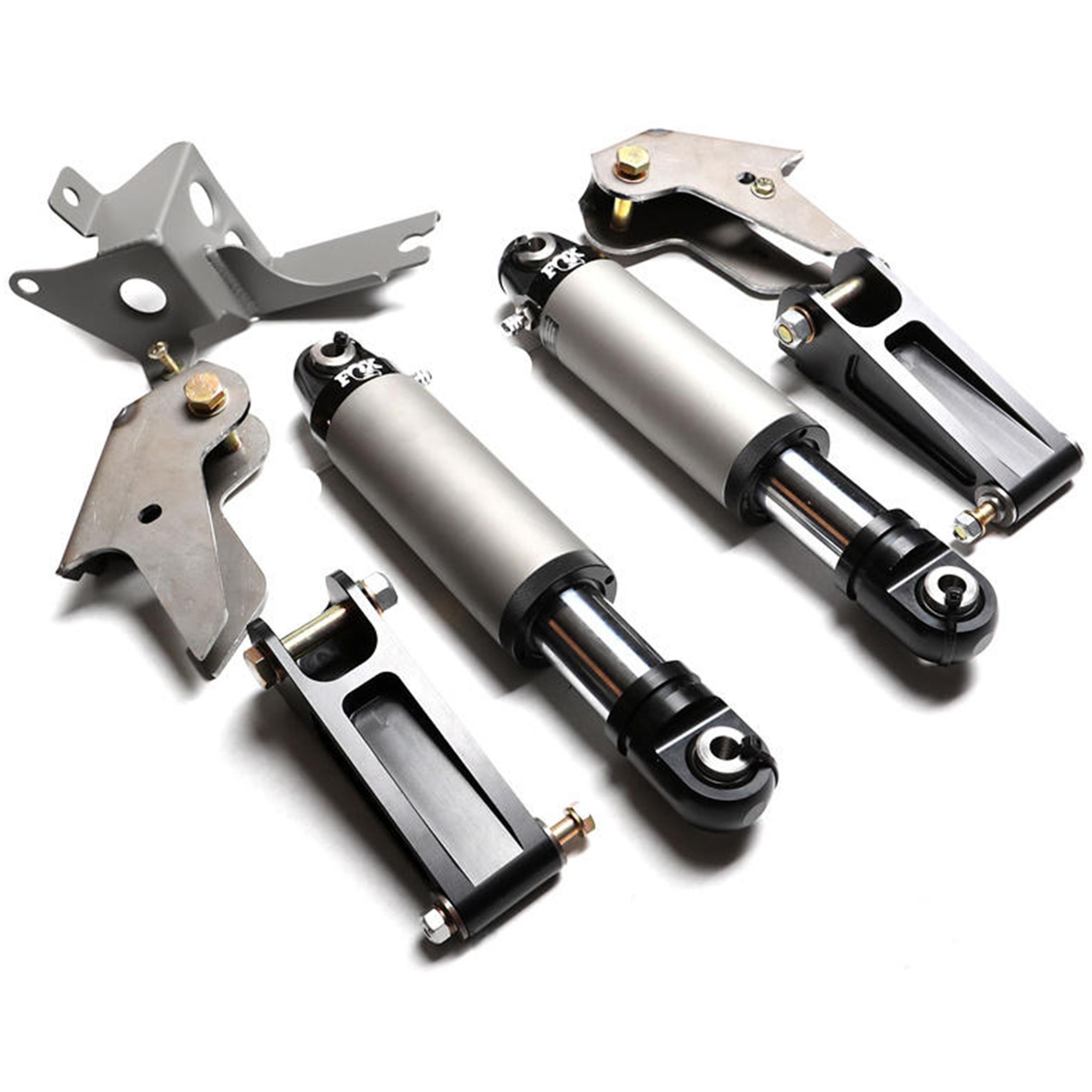 Adding bump stops to our Ford Raptor long-travel kit and stock length performance lower arms is easy with our 2.5 Slapper Bump Stop kit since the lower arms are already tabbed for it. Adding a 2.5 bump stop adds a ton more control and bottoming resistance. This allows for a soft plush ride through the small stuff that doesn’t bottom out easily through the bigger hits and g-outs. This is a great add-on that makes a significant improvement off-road without taking away from ride quality on the street. Why a slapper arm setup you ask? The main benefit is it allows the air bump to strike further outboard on the lower arm making it much more effective and efficient. We’re able to keep the motion ratio geometry consistent through the bottoming out travel so there is constant contact with the lower arm and the bump stop isn’t swiping the lower arm. The bump stops only comes into play toward bottoming and allows free movement in the “ride zone” so the suspension is more active in that range. With the slapper arm design, we’re also able to incorporate a custom rubber pad to reduce noise on contact. This setup also doesn’t inhibit the routing of the coilover remote reservoir lines. Last but not least, it’s really cool too. This kit includes our custom FOX 2.5 bump stops that work more like an air shock. We’ve spent extensive time testing getting these dialed in for our kits. We supply aircraft AN bolts for the upper and lower mounts that have the proper grip/shoulder length for maximum strength. We also include bolt-on brackets to relocate the driver-side ABS module and passenger side wiring harness at the frame for proper clearance and routing. Mounts come raw as they need to be welded on. We recommend spraying them with black Steel-IT after welding.