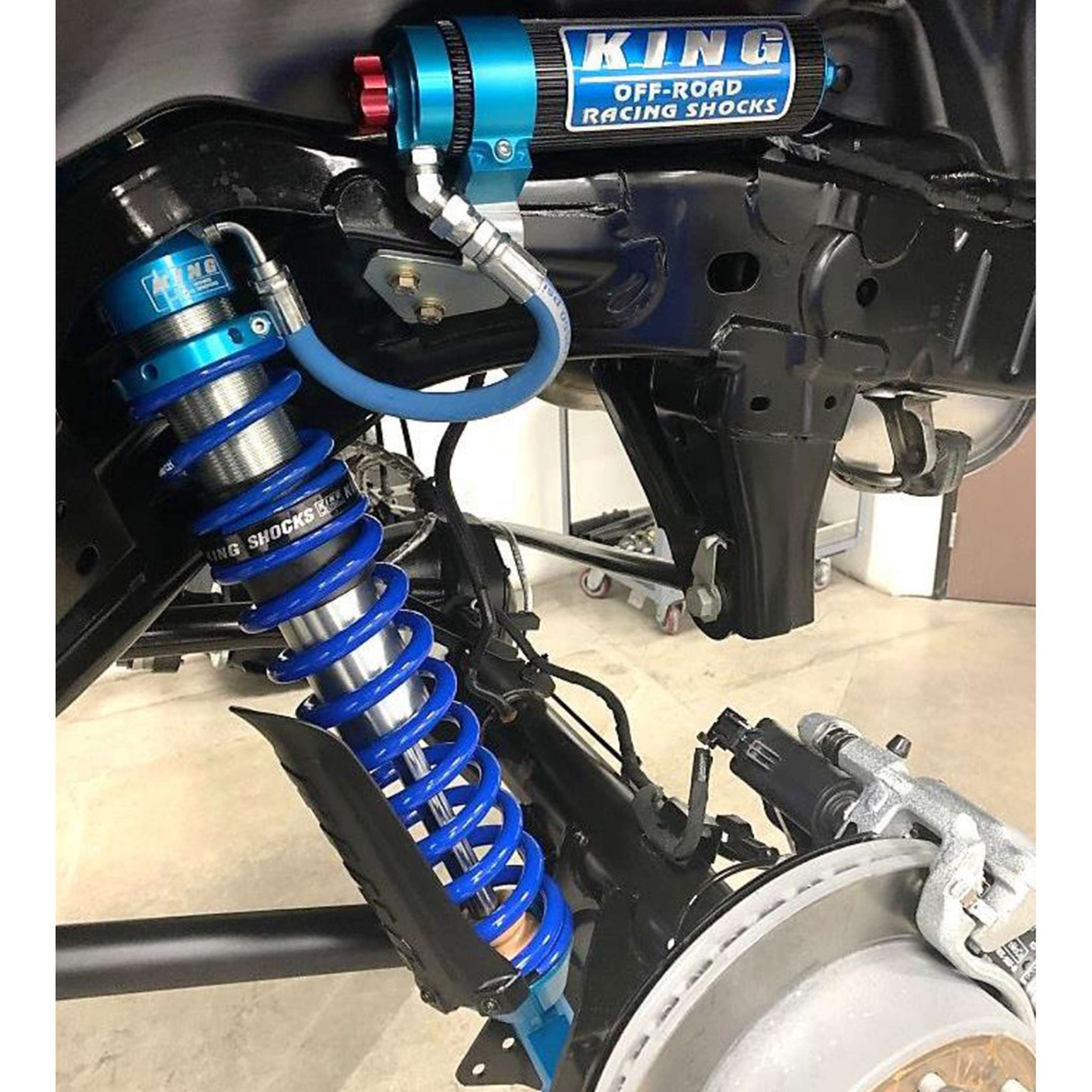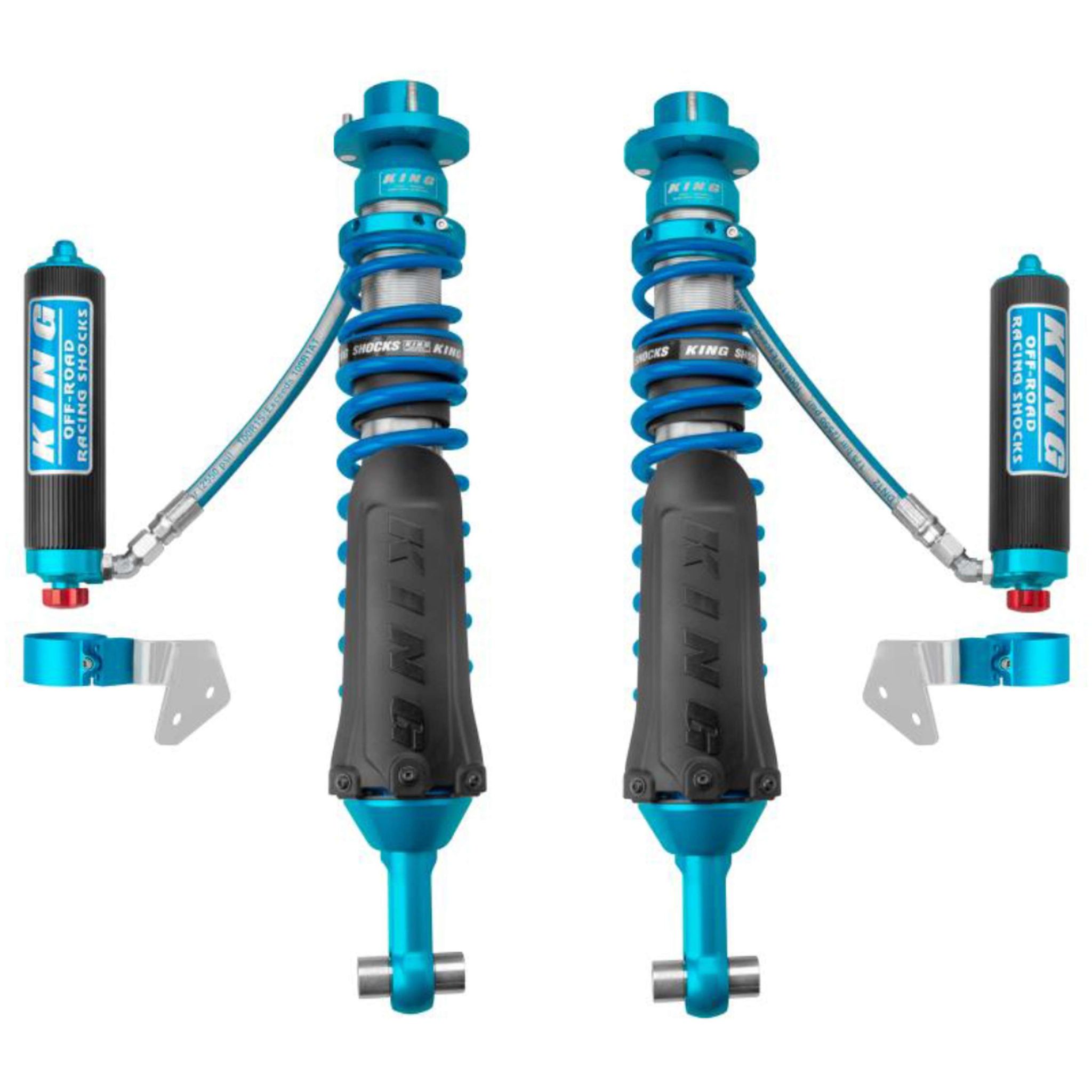 Our King 2.5 Performance kit is a mid travel kit for the '21-25 Bronco. It includes Kings’s 2.5 coilovers, 2.5 rear coilovers, and Camburg upper arms. These parts improve ride and handling both on and off-road with larger shocks and external reservoirs. The Camburg upper arms increase wheel travel and performance. They are stronger and last longer under extreme conditions. We offer uniball or billet series arms with more caster and improved camber curve for better alignment and driving characteristics. In the rear, we convert to coilovers for a better ride and additional lift. The compression adjuster allows tuning of the shock's firmness. Rear wheel travel and articulation are increased with longer shocks. We recommend our rear lower trailing arm kits as an upgrade for more wheel travel and articulation. The kit provides a lift of 0-1" with the Sasquatch Package and 2-3" without it. Please note that fitment is not compatible with the Bronco Raptor. Lift amounts, tire and wheel sizing, and suspension specifications may vary slightly due to production variables. Some trimming or modification may be required to eliminate tire rubbing depending on wheel size, offset/backspacing, tire size, and specific suspension components installed.