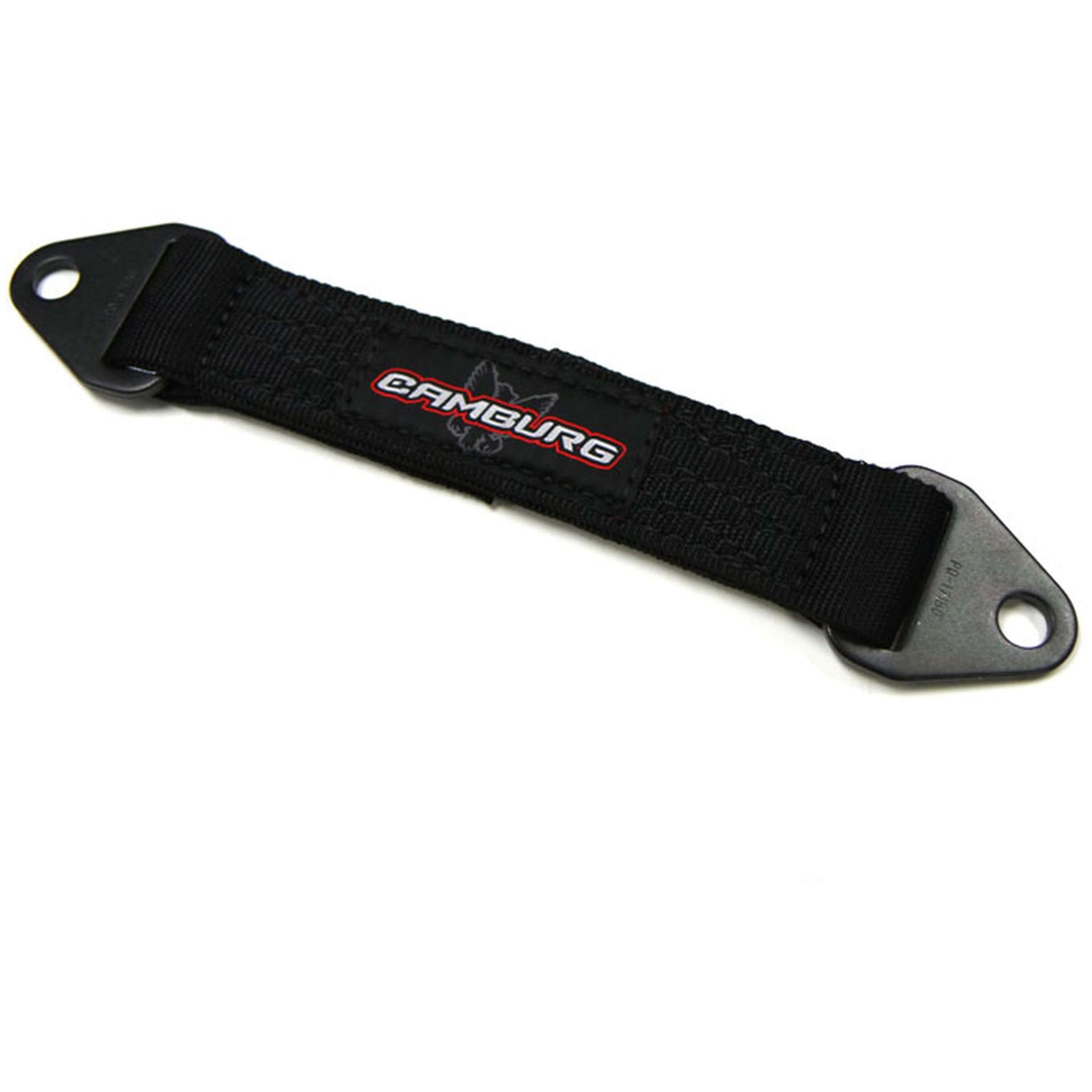 Our Camburg limit straps are made in the USA and quad wrapped (4 layers) for the ultimate strength from military grade materials. The mounting tabs are heat-treated 4130 chromoly and plated black for corrosion resistance. These won't stretch like cheaper versions will that are made overseas using inferior materials. For off-road use we recommend running 2 straps per wheel minimum. These are used to "limit" the suspension so that you're not pulling on the shocks or over extending the steering, driveshafts, CV's, etc. You can also use these for many other things like driveshaft loops and in vertical spare tire cradles to keep a flat from falling out the bottom. These are sold individually not as a pair. When calculating length, ordering and installing limit straps you need to take into consideration tension on the strap and minimal stretching over time. Typically you'll see 1/2" of stretch for every 12" of length. In extreme cases you can see up to 1" of stretch for every 12" of length. When running multiple straps this amount is decreased substantially which is recommended for off-roading. Also having an adjustable limit strap mount gives you the ability to compensate for any stretching over time.
