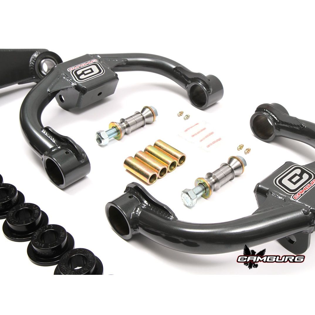 Our 5.5 kit for the RWD Ford Rangers set the bar years ago as the best performance kit available. The kit uses our 3" lift fabricated race spindles with a massive 1" vertical uniball that replaces the weak upper ball-joint that is prone to fail. This allows for 10" of useable wheel travel. The upper arms are made from 1.50" x.120 wall 4130 chromoly tubing and double shears the uniball. We use Bilstein 5100 series for added control that bolt right in and are valved for this kit. Our coil springs provide 2.5" lift and are heat-treated and stress relieved. Track width is increased 1.5" per side giving you a wider stance for better stability and added wheel travel. This is why Fiberglass front fenders are highly recommended. We now include our weld-on upper frame gusset reinforcement kit. This kit fits RWD Rangers with coil springs only. For torsion bar trucks use our Ranger Edge 6.0 kits. 1998-2000 models require the larger 2001+ 11.25" OD brake rotors.