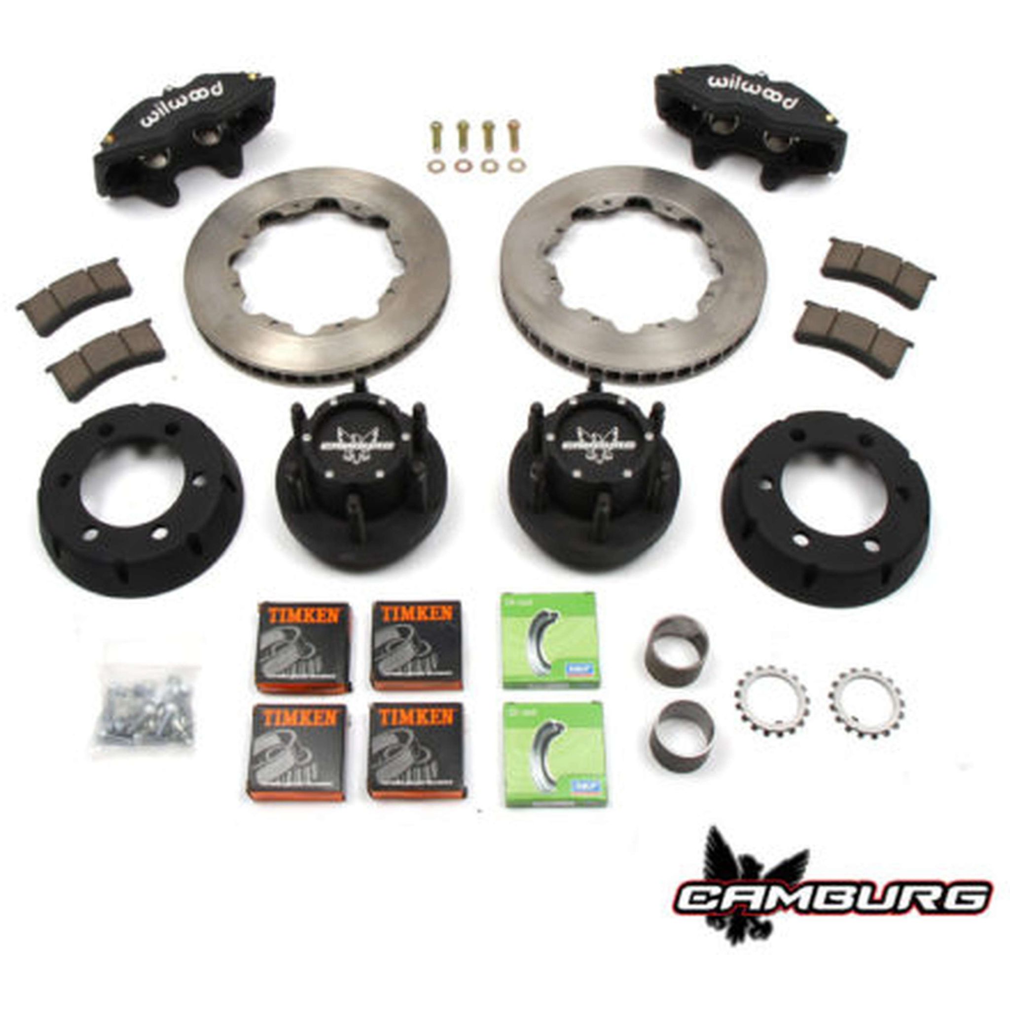 The Camburg race kit is capable of 18-20? of wheel travel. With billet 2.0 race hubs, Wilwood disk brakes, custom fabricated spindles, and lower A-arms with 1? uni-ball frame pivots and 1.5? lower uni-ball for the ball joint, and full heim steering it is no wonder why this is the most advanced kit available today. This can be installed on 4wd trucks, converting it to 2wd.